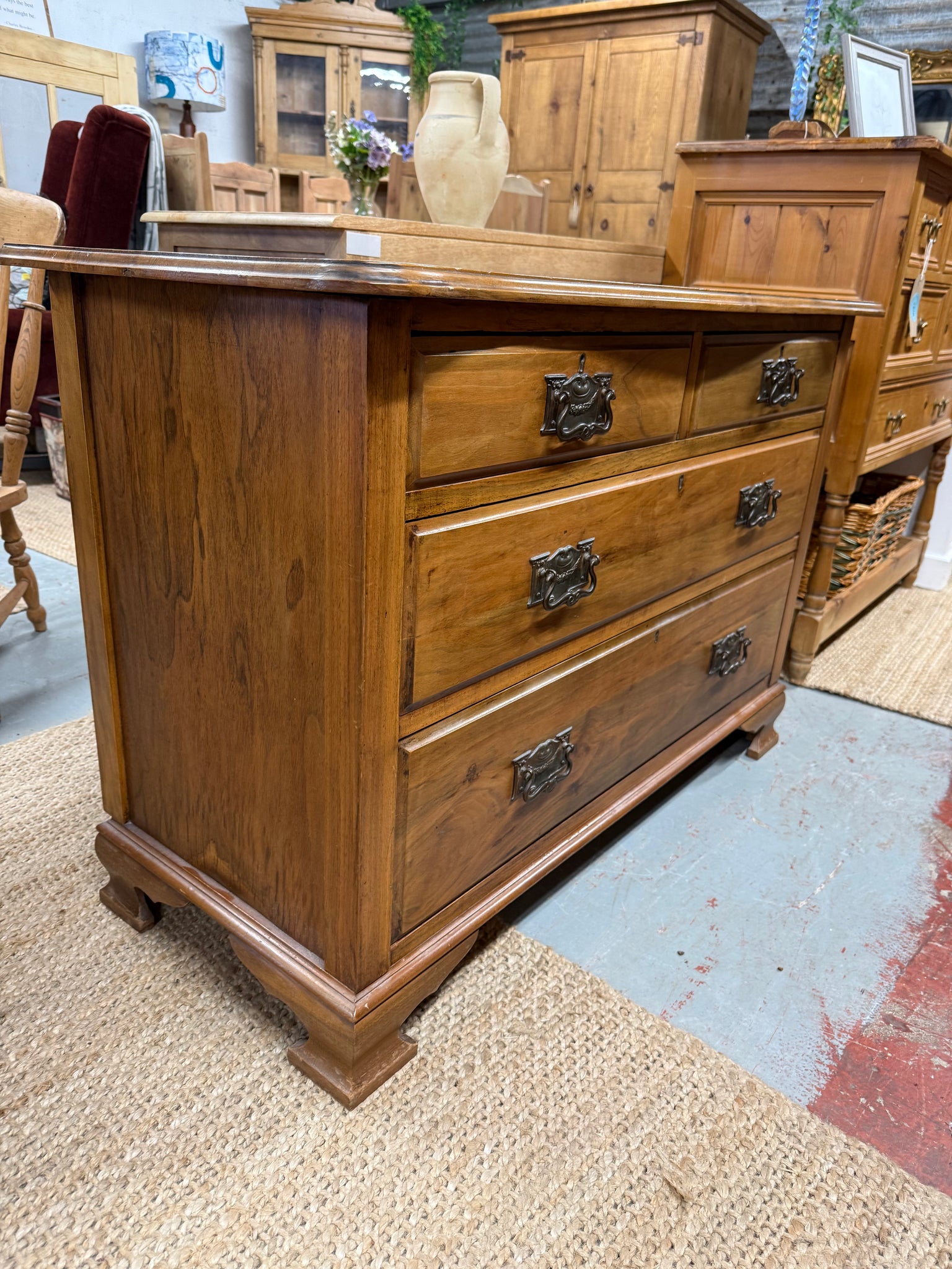 This elegant Victorian satinwood chest of drawers combines timeless craftsmanship with practical storage. Featuring a traditional layout of two short dovetail-jointed drawers above two spacious long drawers, it offers versatile organisation for any room. The piece is structurally sound with minor surface marks that add to its authentic character. A distinguished vintage addition for those who appreciate quality furniture with genuine period appeal.