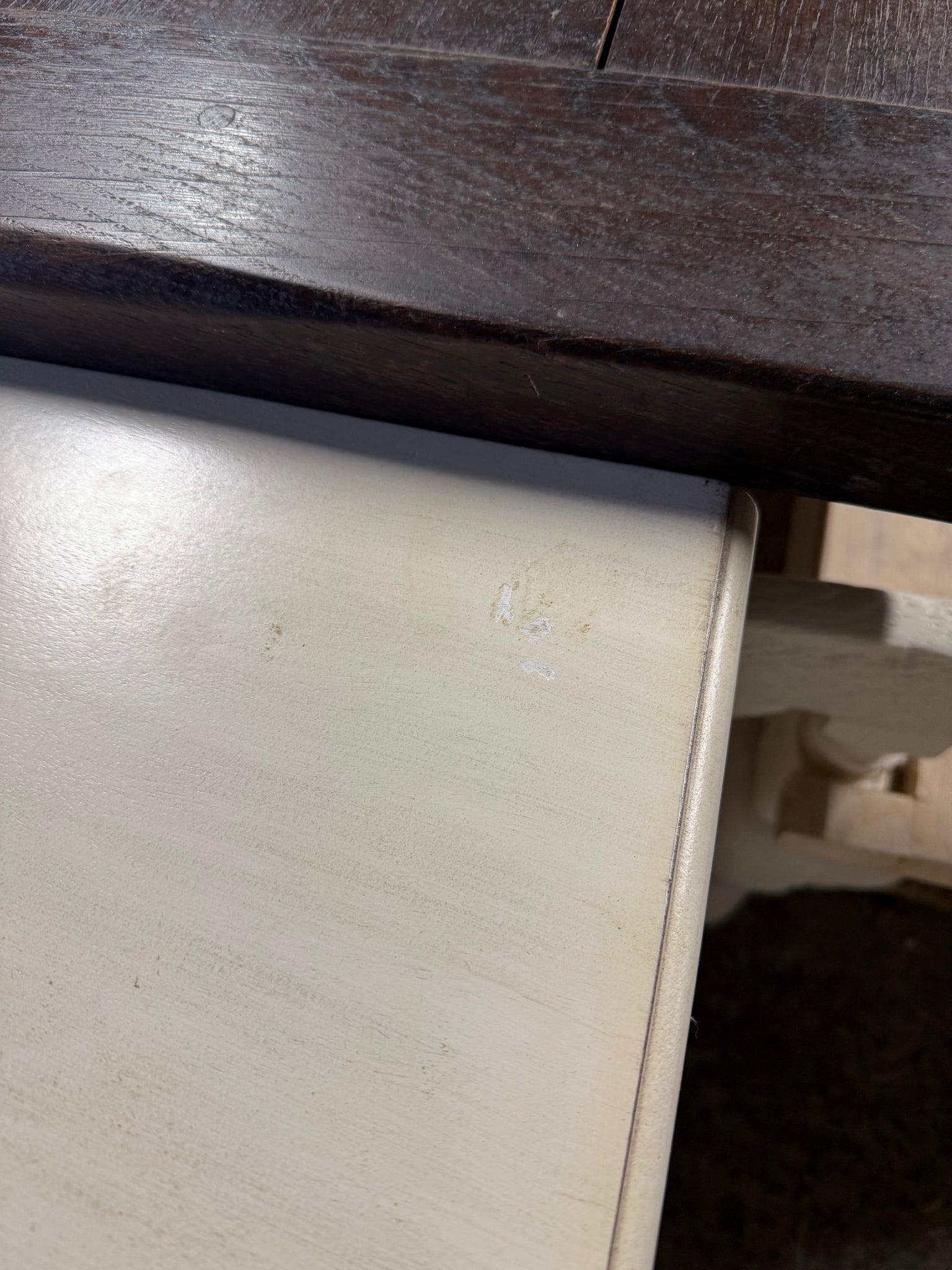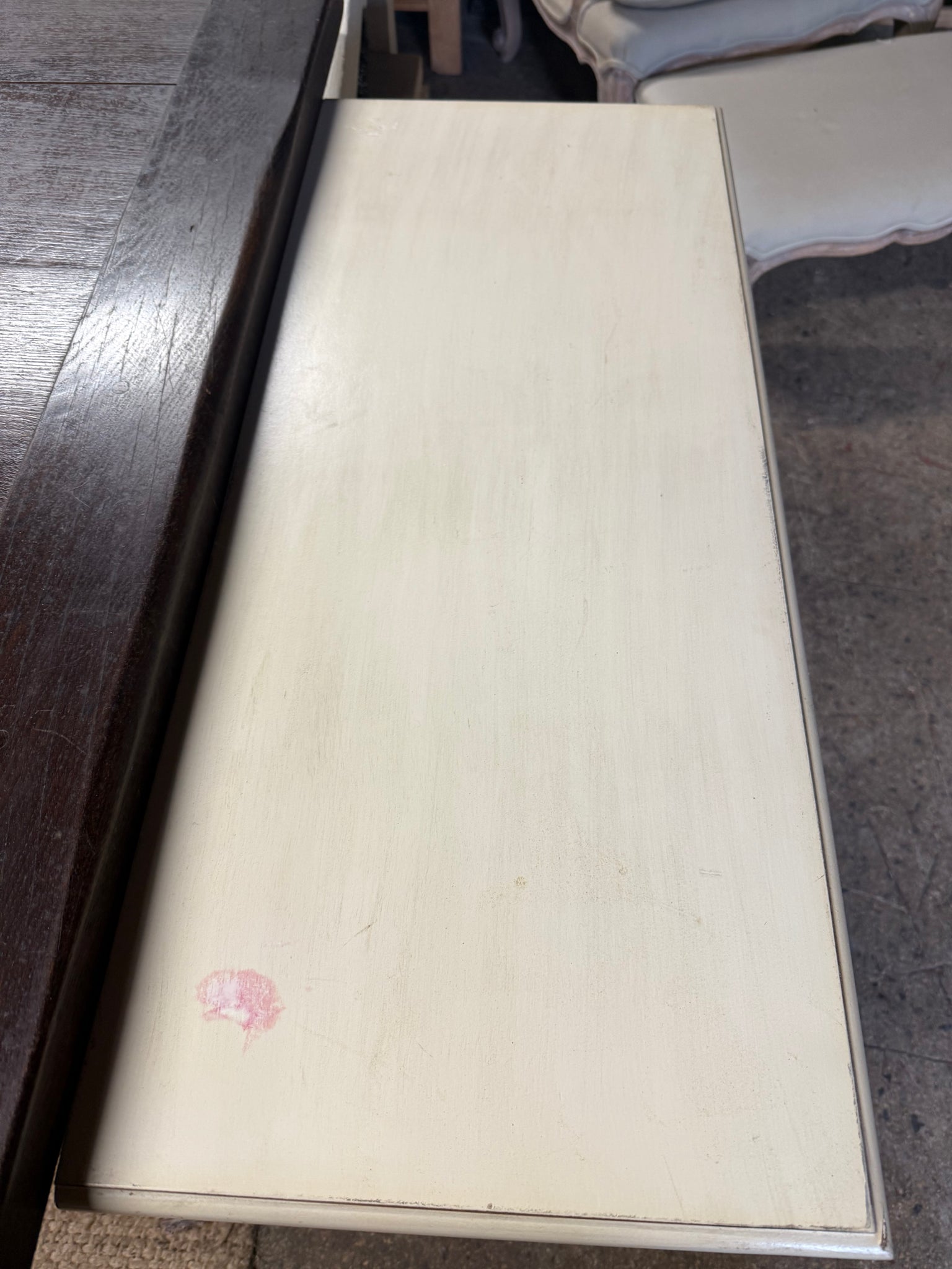 A charming white chest of drawers that combines practicality with timeless appeal. Featuring a classic configuration of two compact drawers above two spacious ones, it's ideal for nurseries or bedrooms seeking smart storage solutions. This pre-loved piece retains its structural integrity and solid functionality, with a few marks that speak to its history.