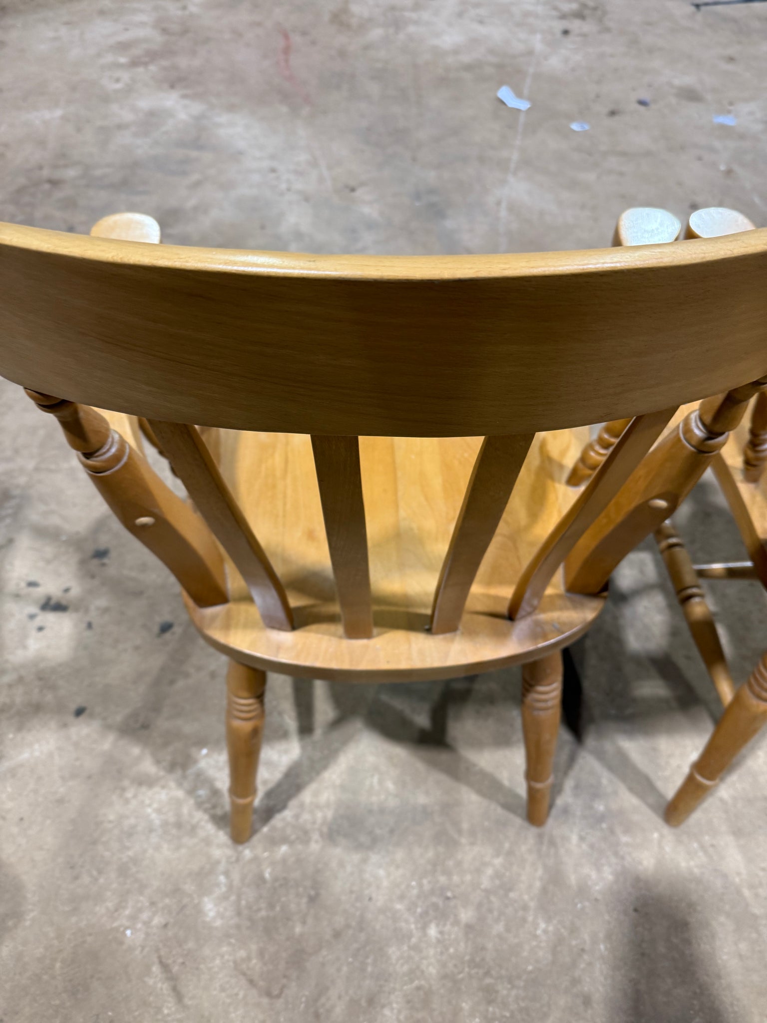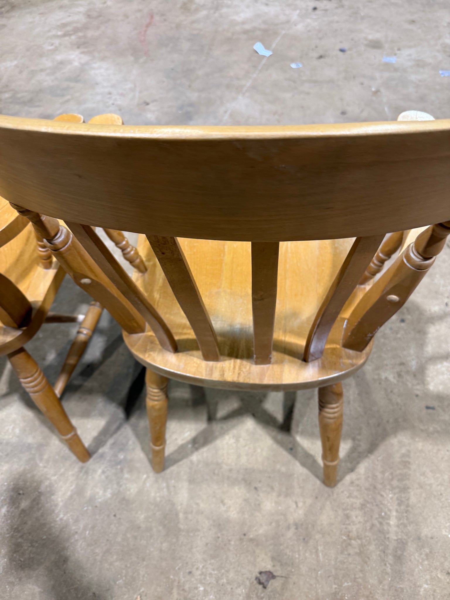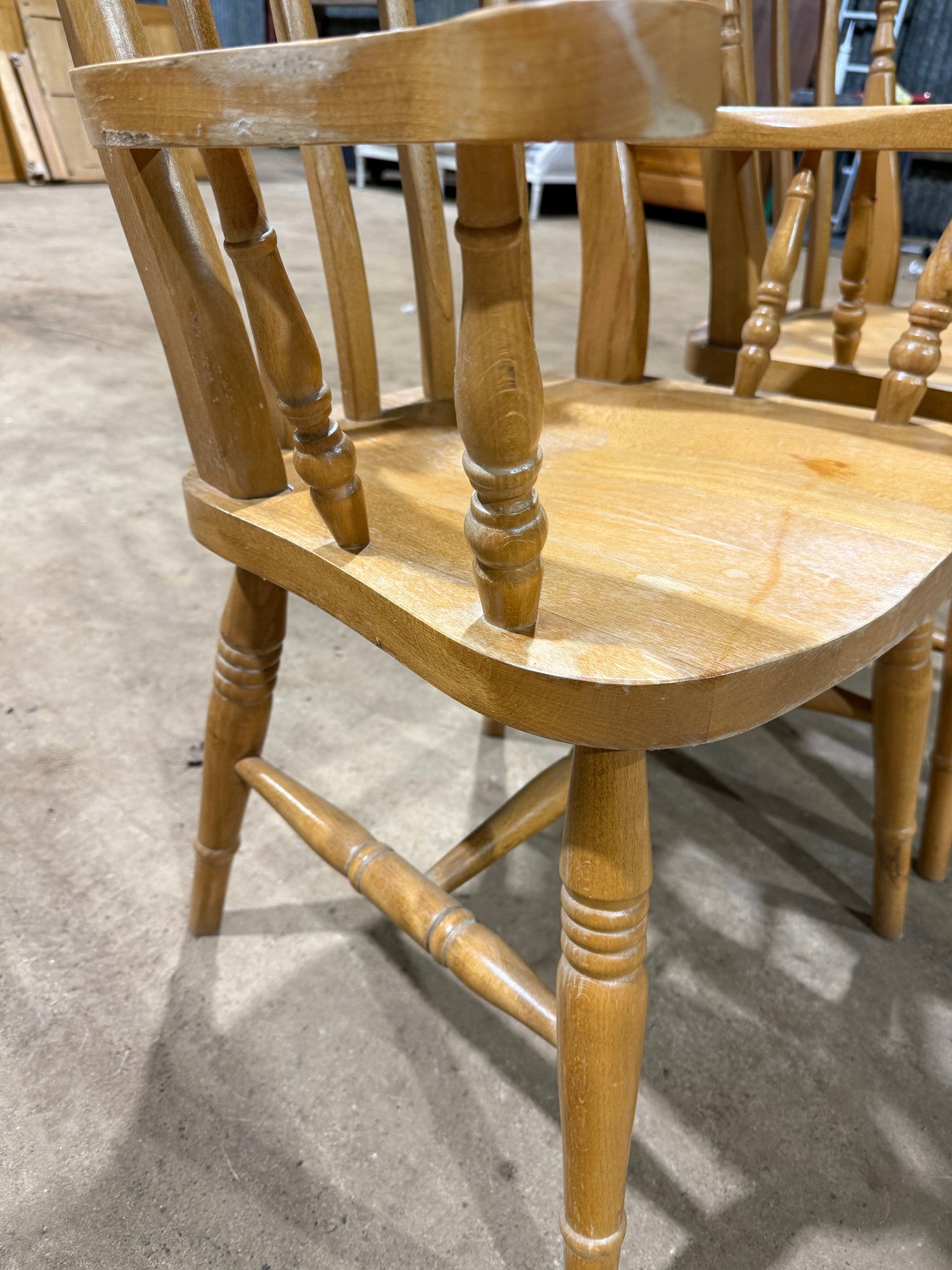 A matching pair of solid pine carver chairs offering sturdy seating with authentic character. Both pieces are in sound working order, displaying the natural patina of age with minor surface marks that add to their charm. Ideal for dining settings or bedroom spaces, these well-crafted chairs combine practicality with timeless appeal.