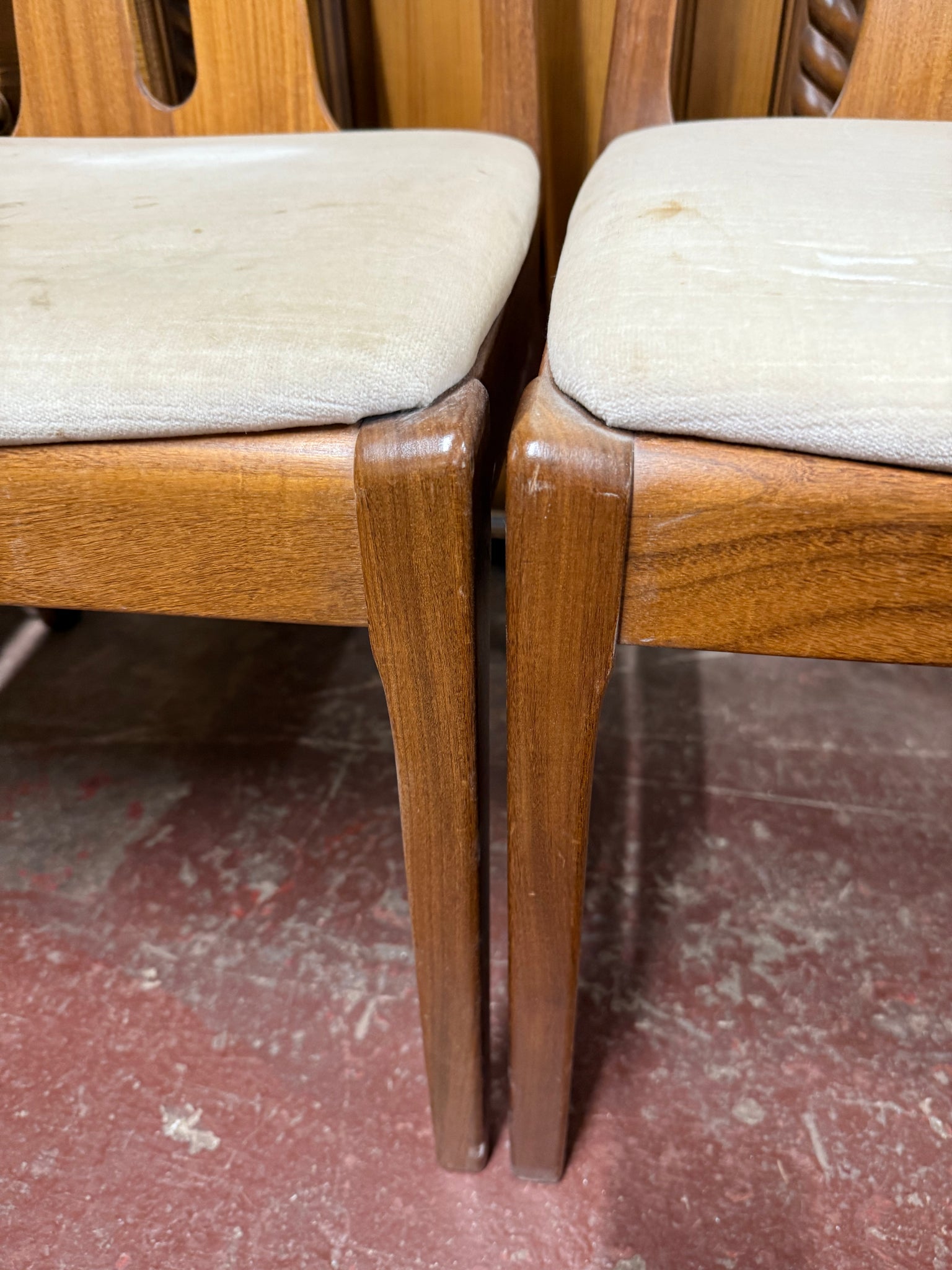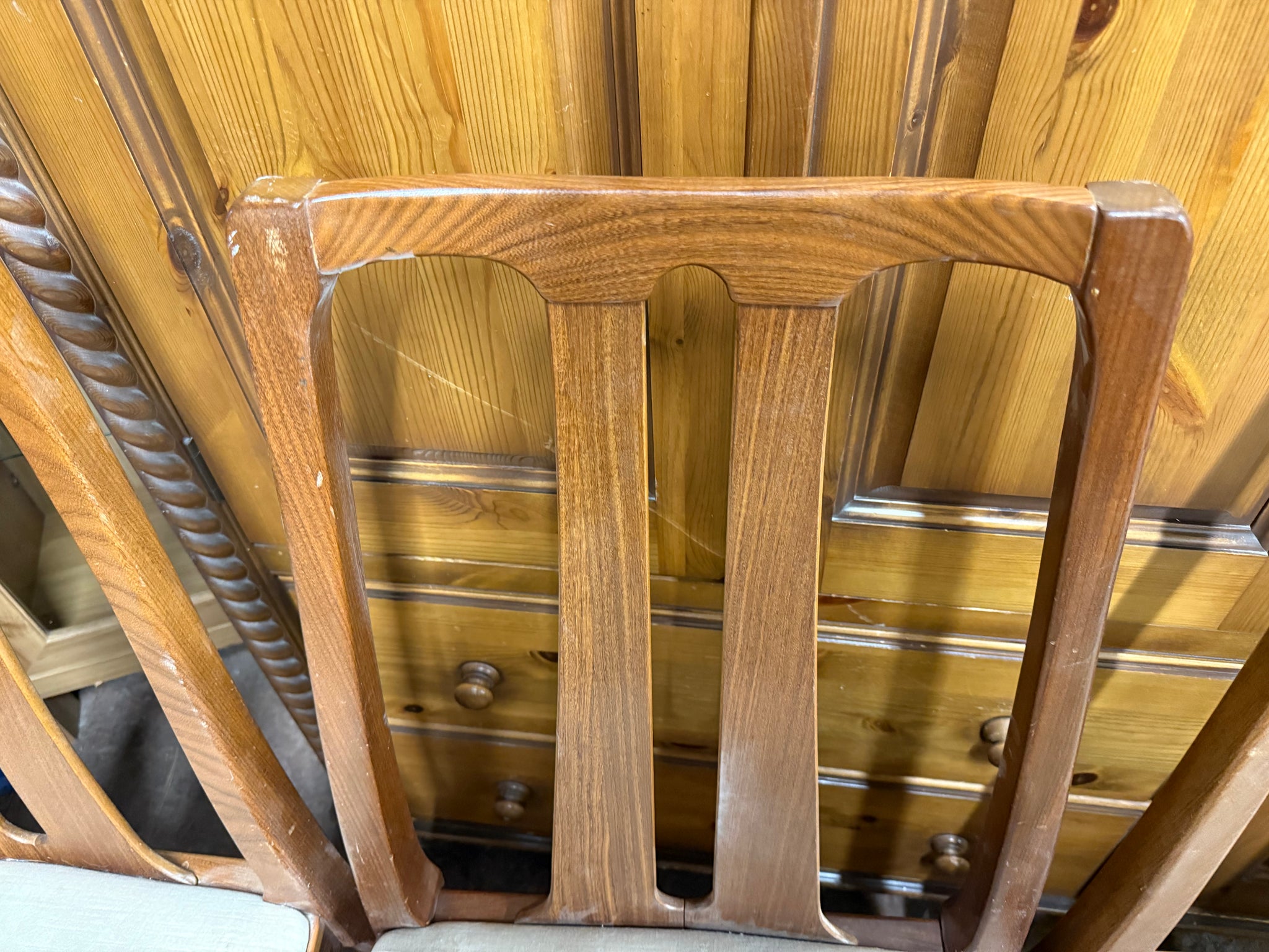 This cheerful set includes 4 dining chairs that are sturdy and in good overall shape. While they show some signs of use, the marks are minor and do not affect their solid construction.
