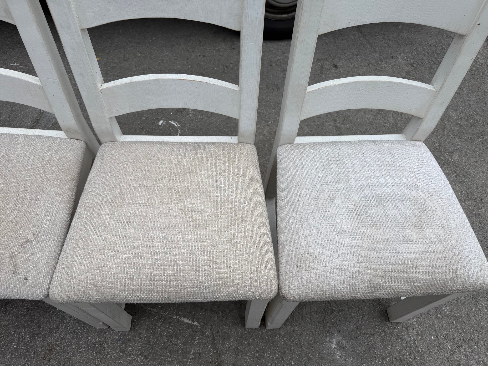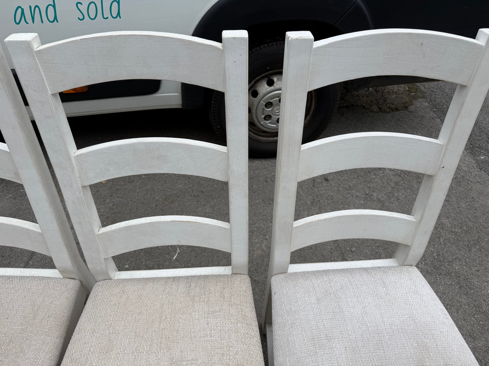 This charming set of four pine ladder back dining chairs are sturdy and in generally good shape. While a little refresh and a clean for the seats would bring them back to their best, they’re ready to brighten up your dining space perfectly.