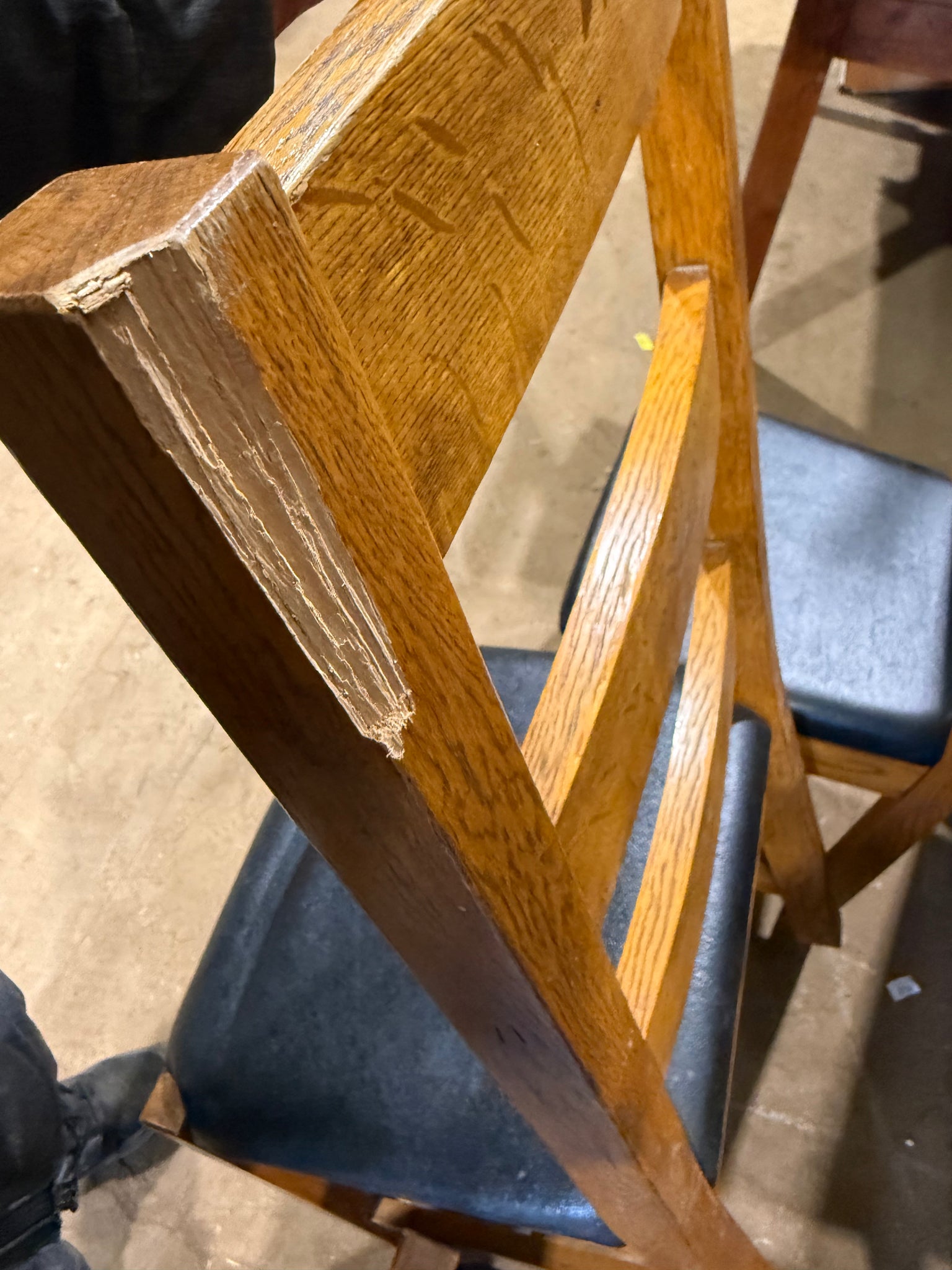 A charming set of four oak chairs, each structurally sound and ready for use. The natural patina reflects their age and character. Seat pads show minor denting that may diminish with use. One chair features a small loss to the backrest that does not compromise functionality.