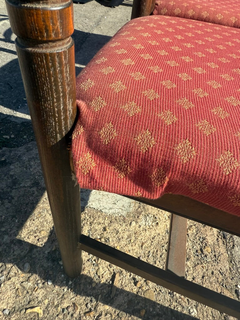 This charming set of 4 oak chairs combines timeless style with solid craftsmanship. Each chair is sturdy and well-built, ensuring lasting comfort and support. While these chairs have been gently used, they only display minimal signs of wear, adding character without detracting from their overall good condition. Perfect for dining or casual seating, this set offers both practicality and classic appeal to brighten up your home.