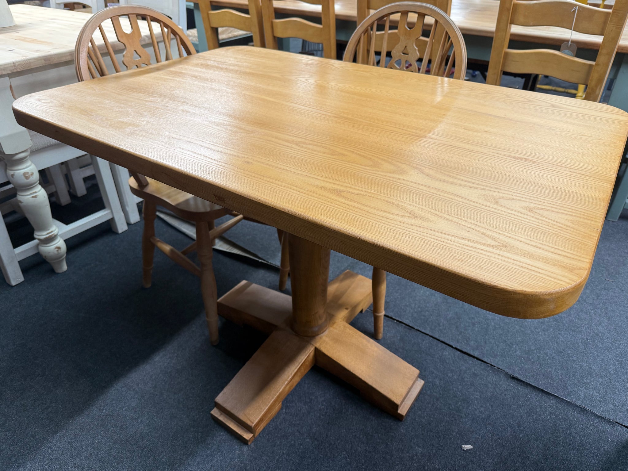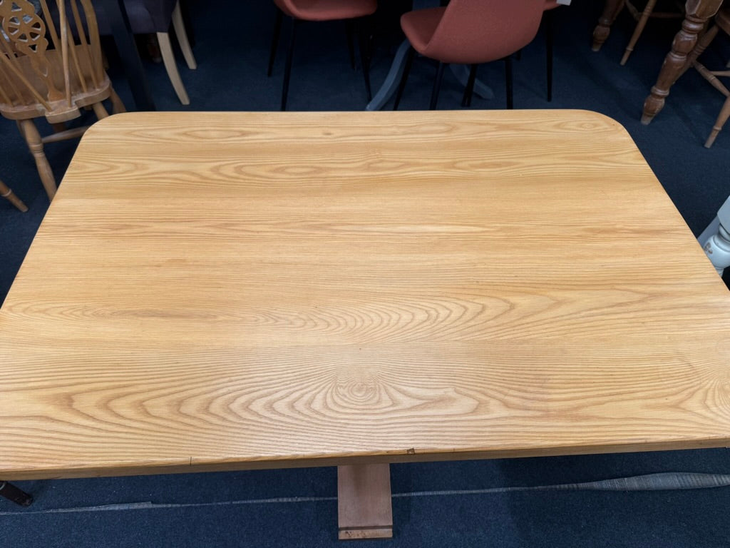 Crafted from solid wood, this dining table combines durability with understated style. Its sturdy construction makes it a reliable centrepiece for everyday meals, accommodating four diners with ease. The removable legs offer practical flexibility for storage or transport, while the table's well-maintained condition ensures years of dependable use.