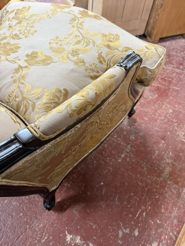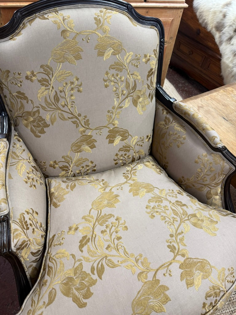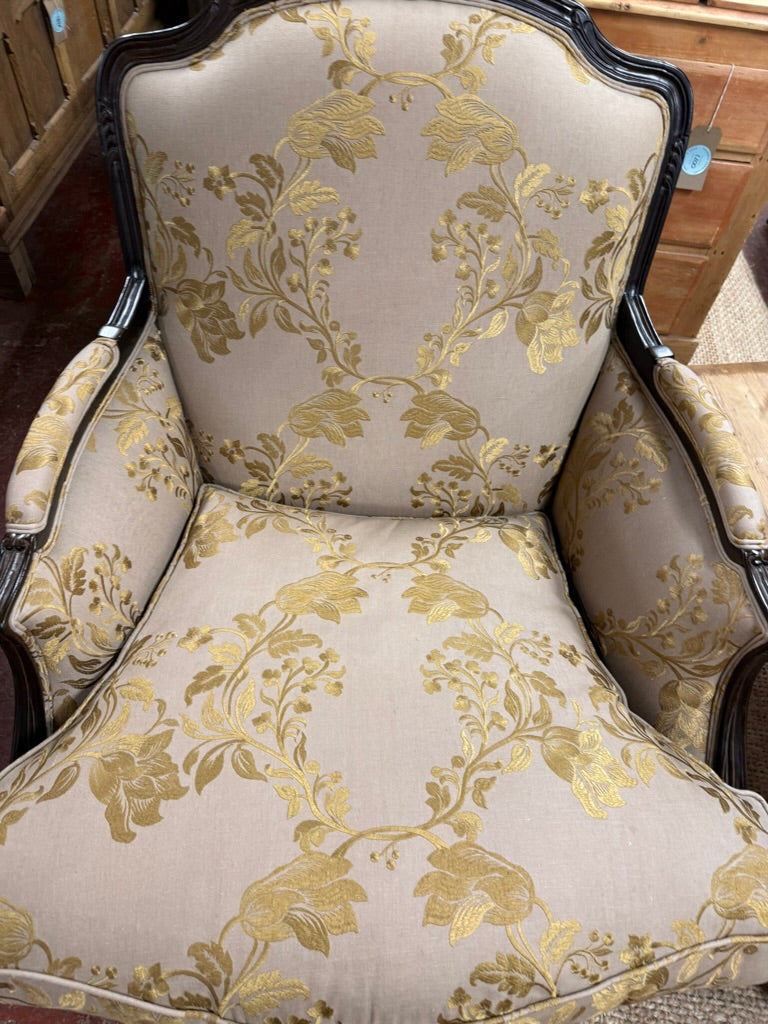 A charming Louis-style armchair with authentic period appeal. This pre-loved piece boasts solid construction and remains in great condition, bearing the gentle patina of age with only minor surface marks. Its graceful silhouette and refined detailing make it an understated focal point for period interiors or eclectic spaces seeking character and elegance.