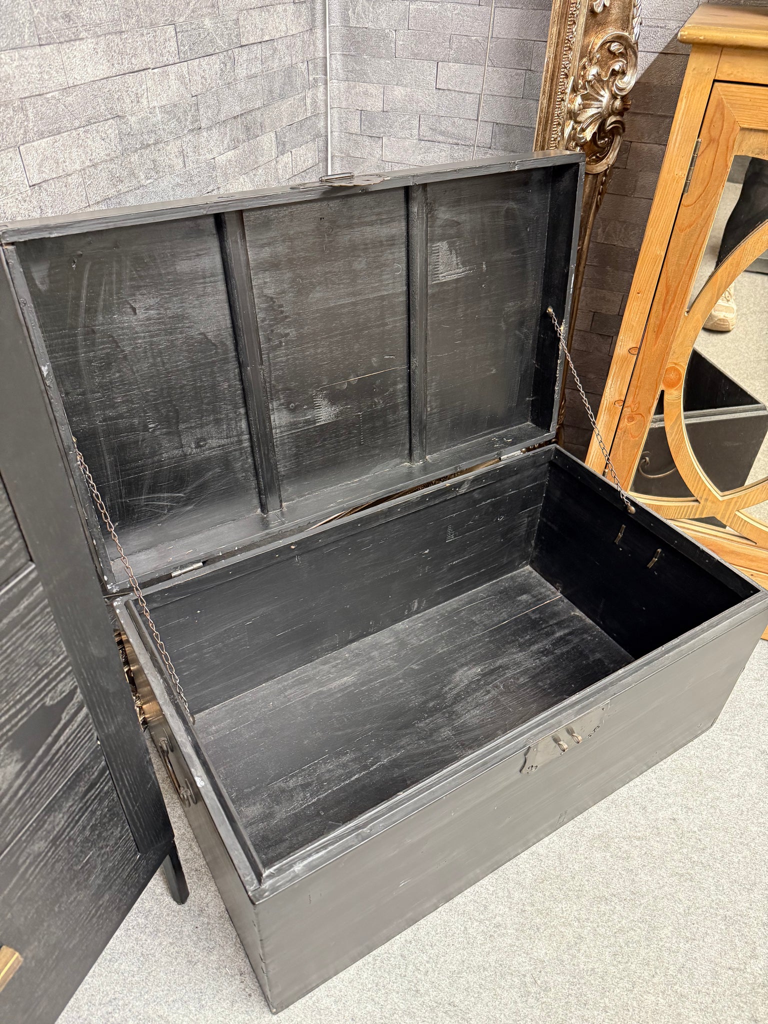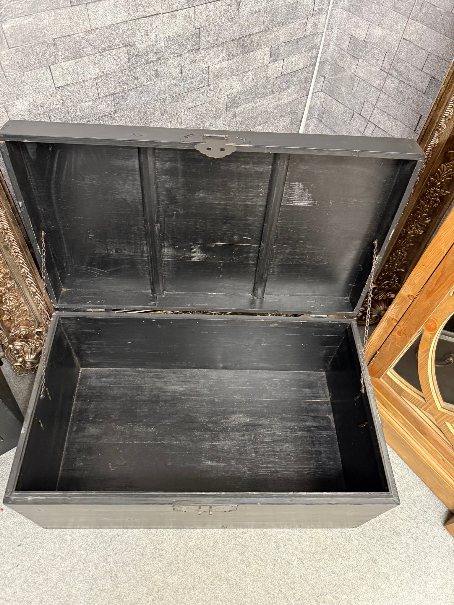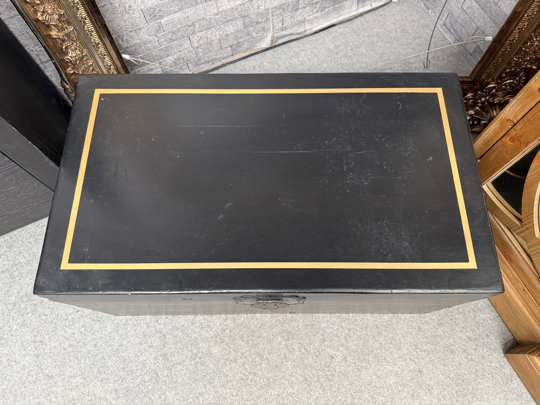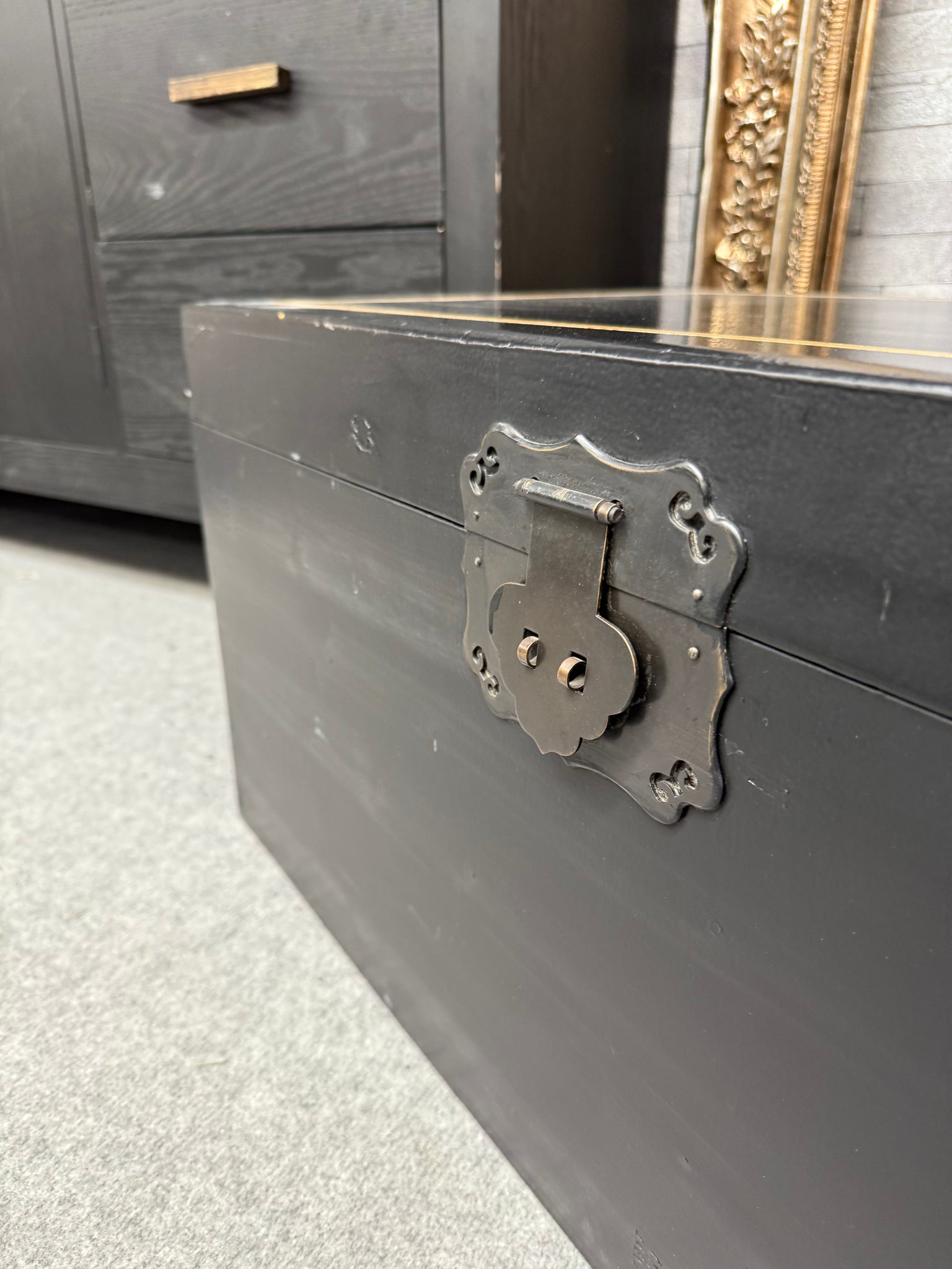 Elevate your home storage with this striking blanket box, featuring a sleek black finish complemented by elegant gold detailing along the top. Perfect for keeping toys, blankets, and seasonal items neatly organised, this contemporary piece brings both style and functionality to any room.