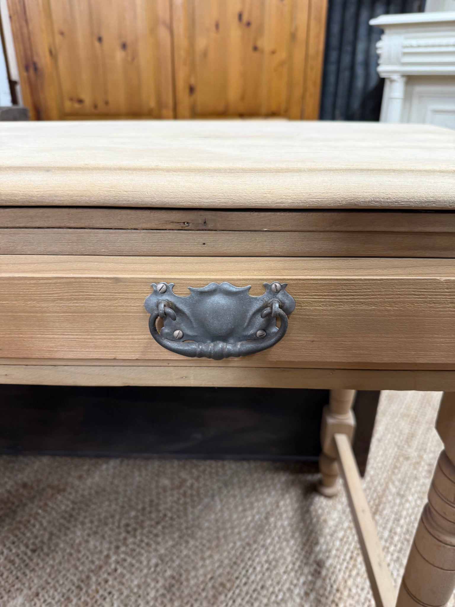 This beautiful mahogany console table/desk has been fully stripped to reveal its natural finish and could use a wax coating to help protect the surface. Featuring two small drawers with dovetail joints, it offers handy storage space.