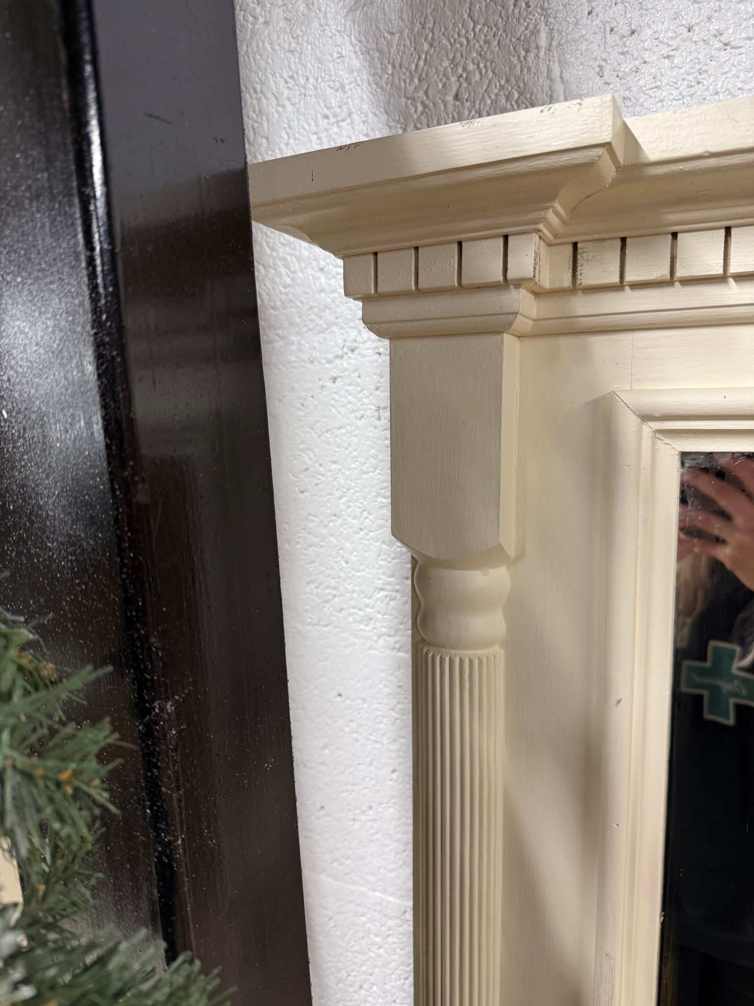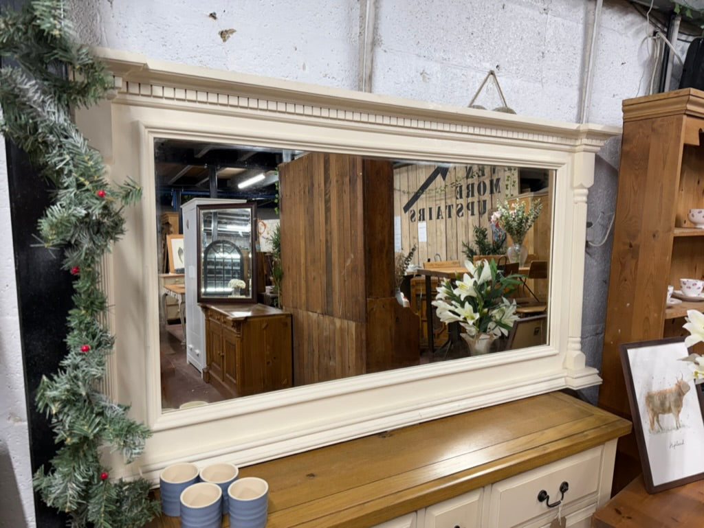 A beautiful cream over mantle mirror that brings elegance to any fireplace setting. This generously sized piece is built to last, with solid construction and excellent overall condition. While it bears the gentle patina of age with minor surface marks, these only add to its authentic character and charm. Perfect for creating a focal point above your mantelpiece.