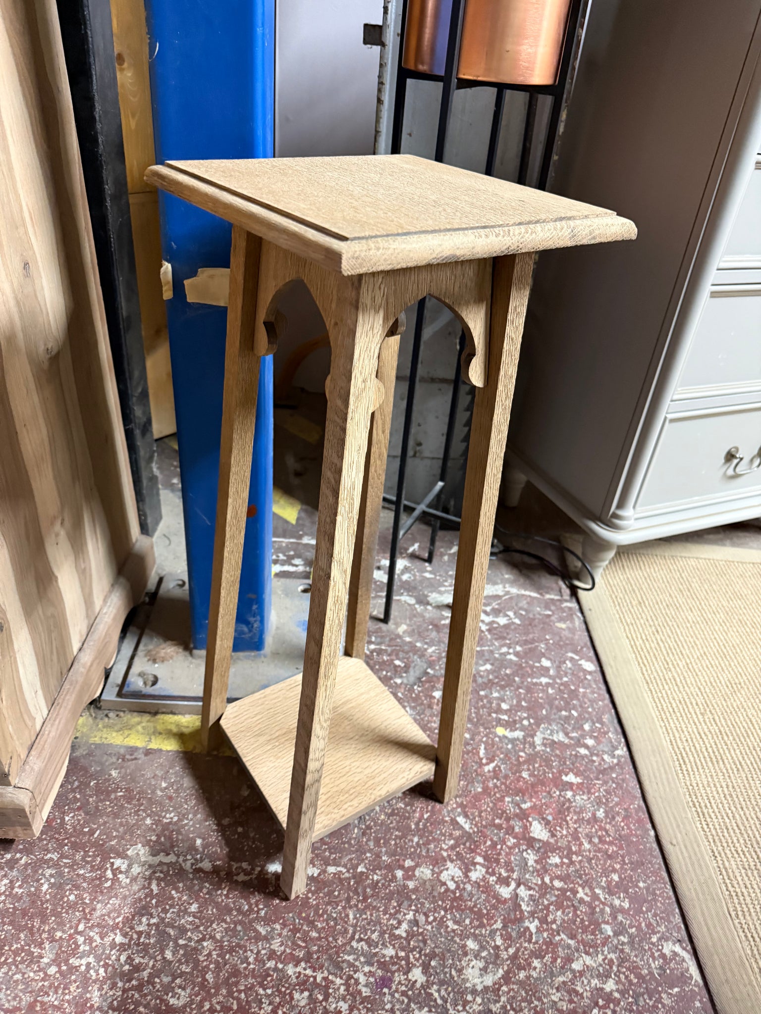 A charming oak plant stand with authentic character. Stripped back to reveal natural wood grain, this sturdy piece is structurally sound and ready to display your favourite plants. The lower shelf provides practical storage space. A protective coat of wax will enhance the finish and durability. Perfect for adding warmth to any room.