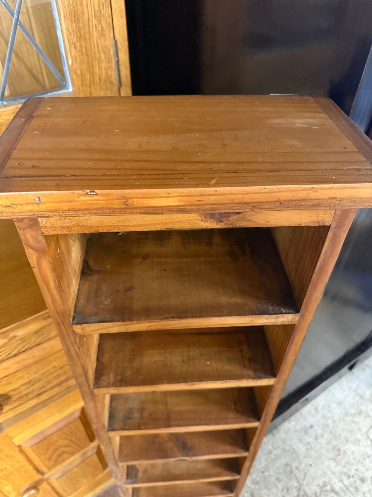 This delightful narrow bookcase crafted from solid pine is strong and generally well-maintained. While it has been gently used and has a few small marks, they are hardly noticeable. With seven fixed shelves, it provides ample room to showcase your favourite books and keepsakes.