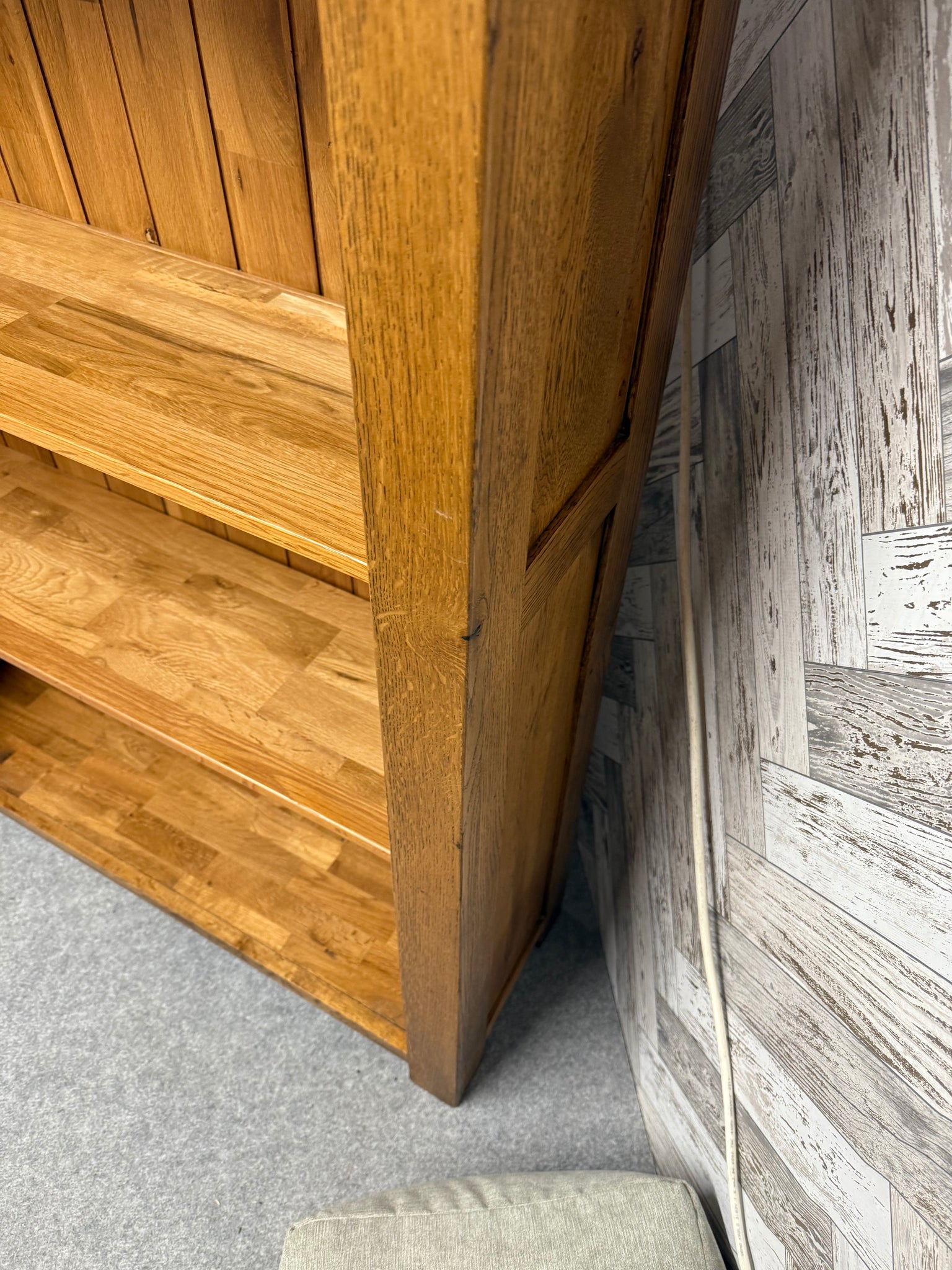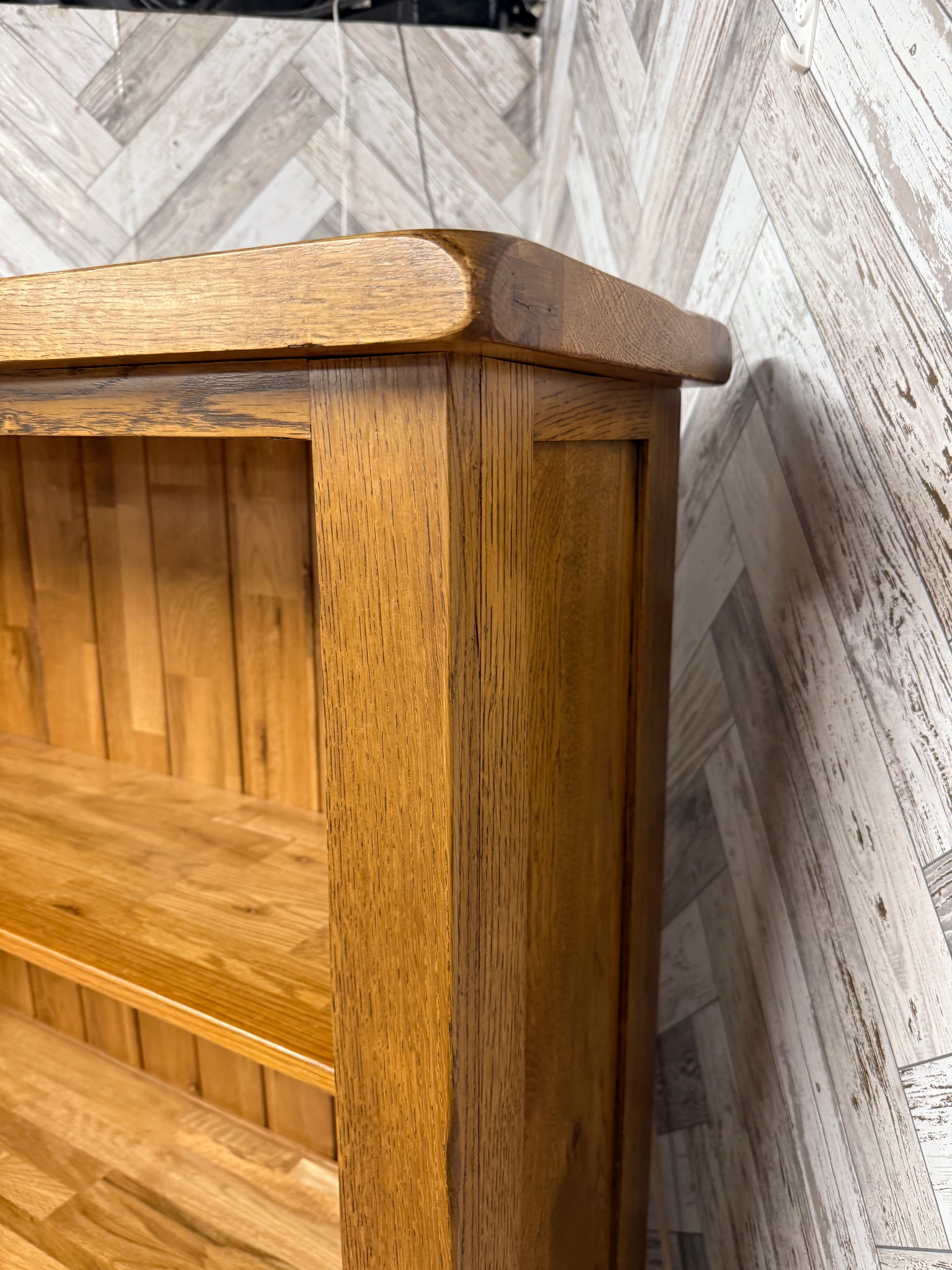 Discover the timeless appeal of this handsome oak bookcase, a piece originally from Oak Furniture Land. Built to last, this sturdy three-shelf unit offers generous storage space for your favourite books and treasures. While it has a few marks, it remains in excellent working condition—perfect for adding character and functionality to any room.