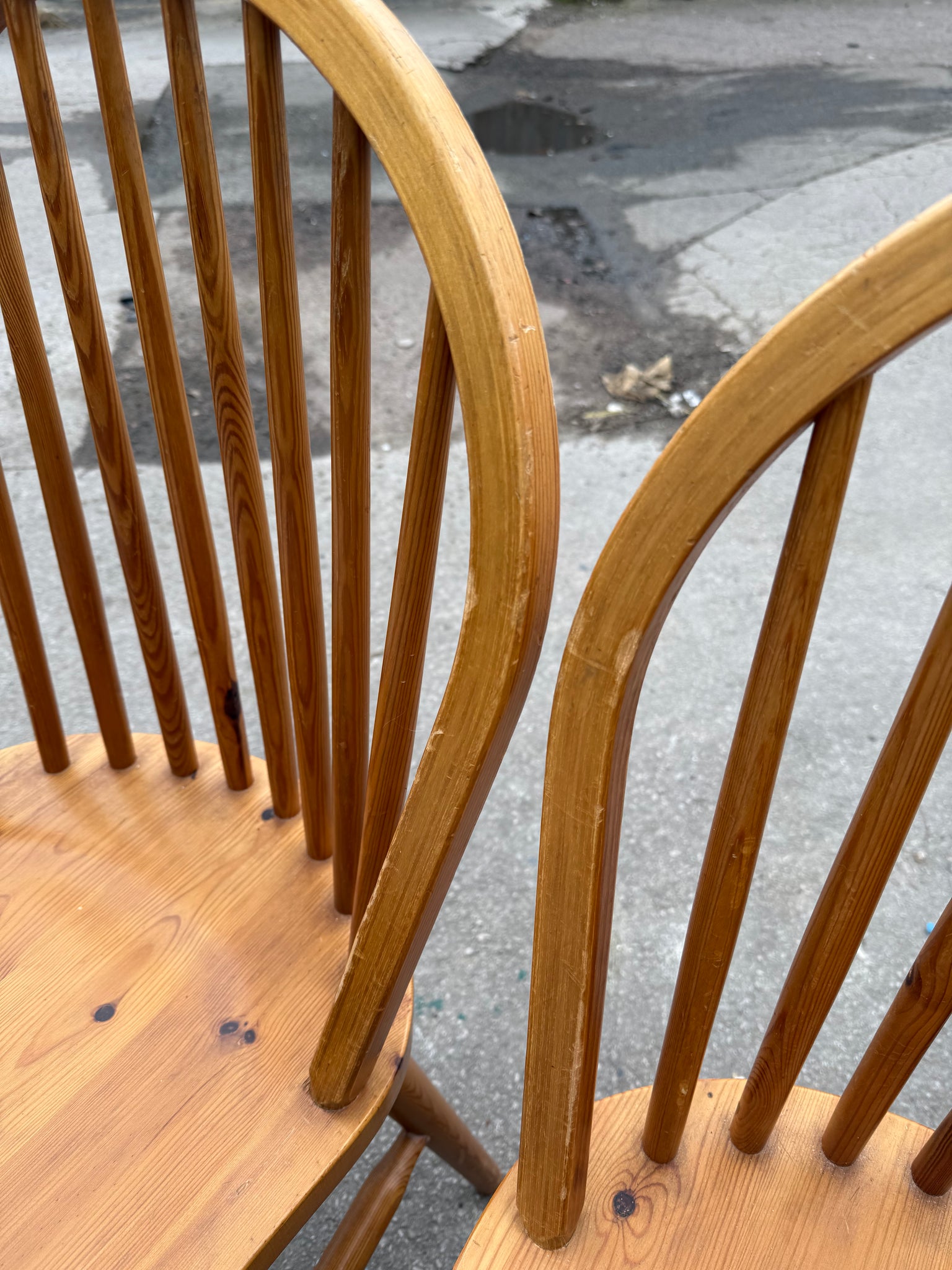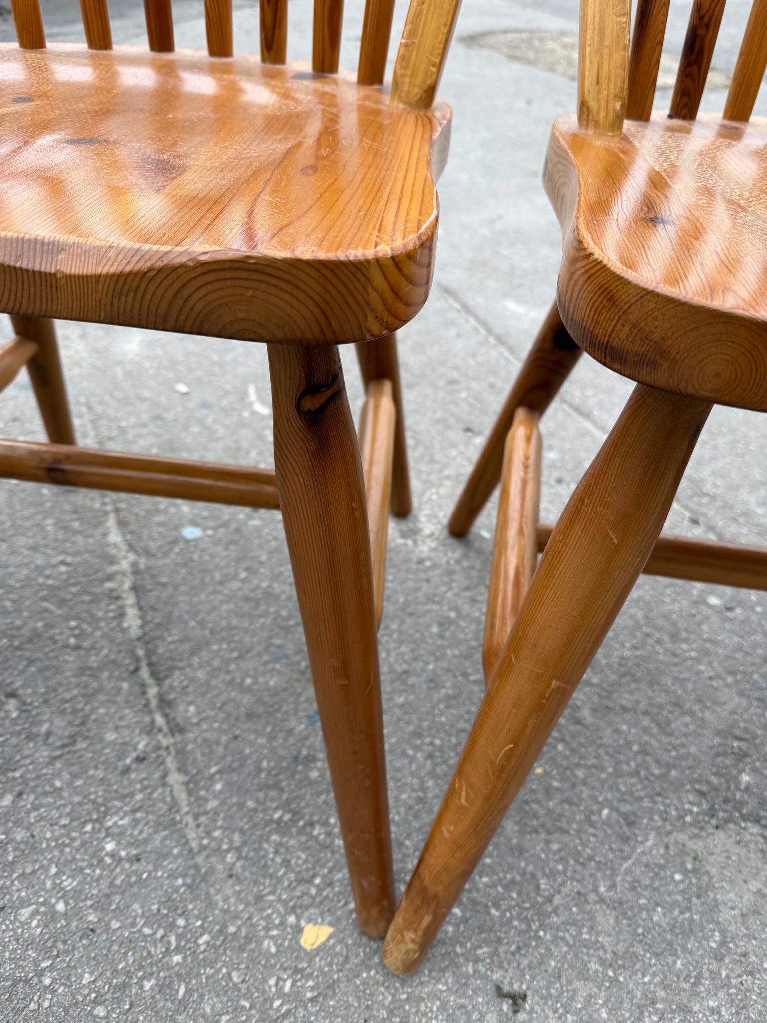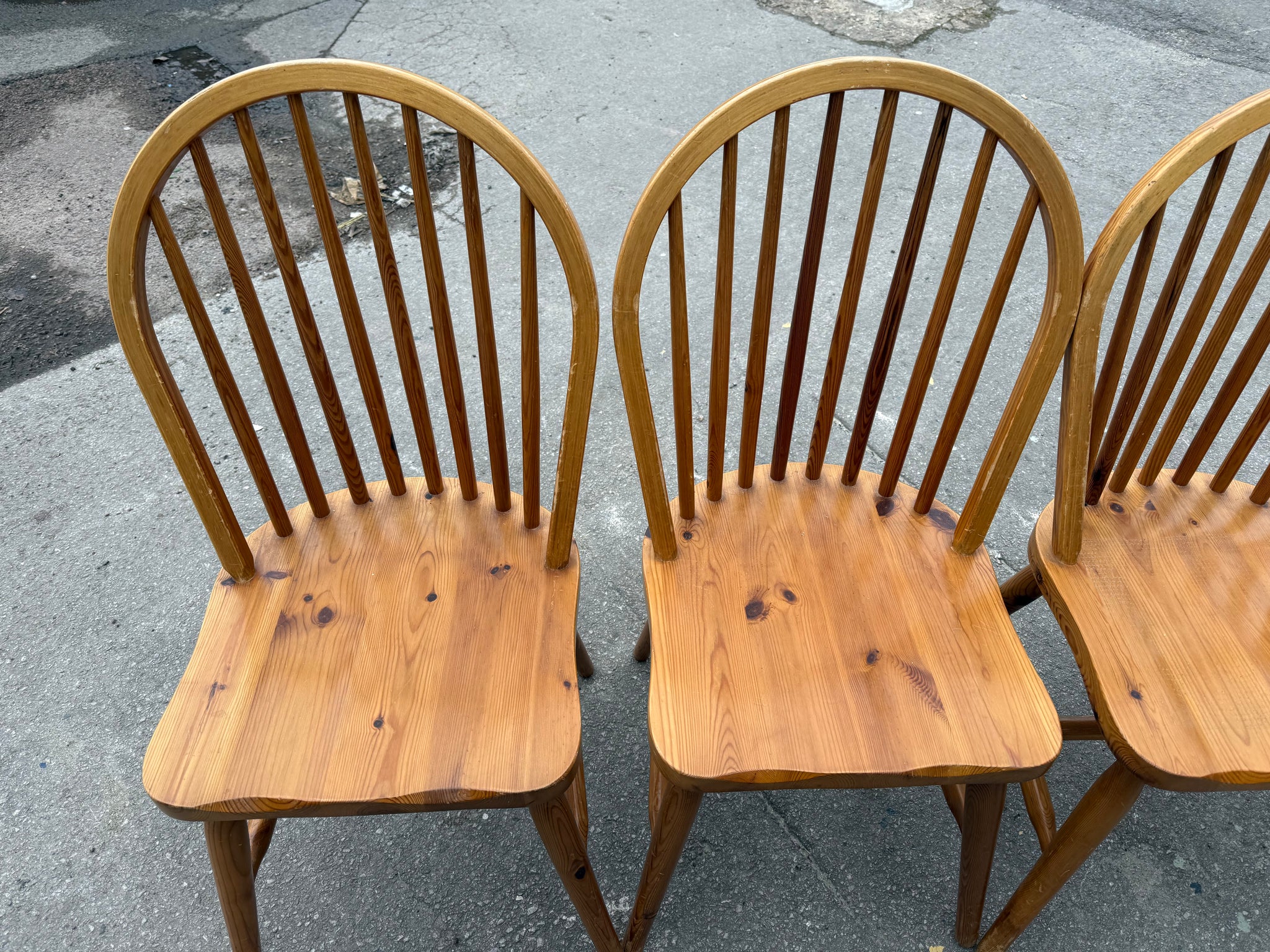 A dependable quartet of pine dining chairs built to last. Each chair is structurally robust and in good working order, with the expected wear marks that come with use. Perfect for families or anyone after honest, hardwearing seating without the premium price tag.