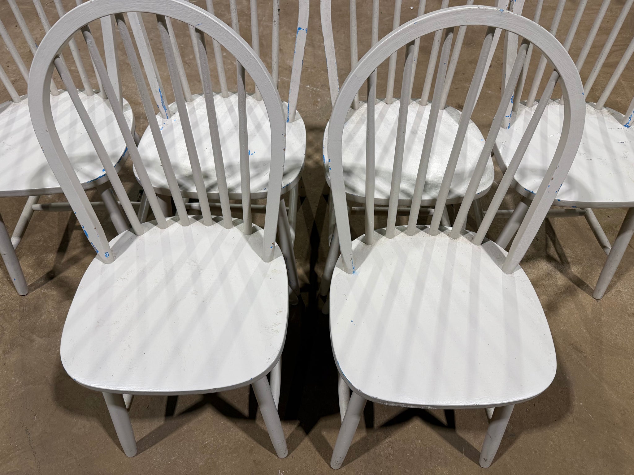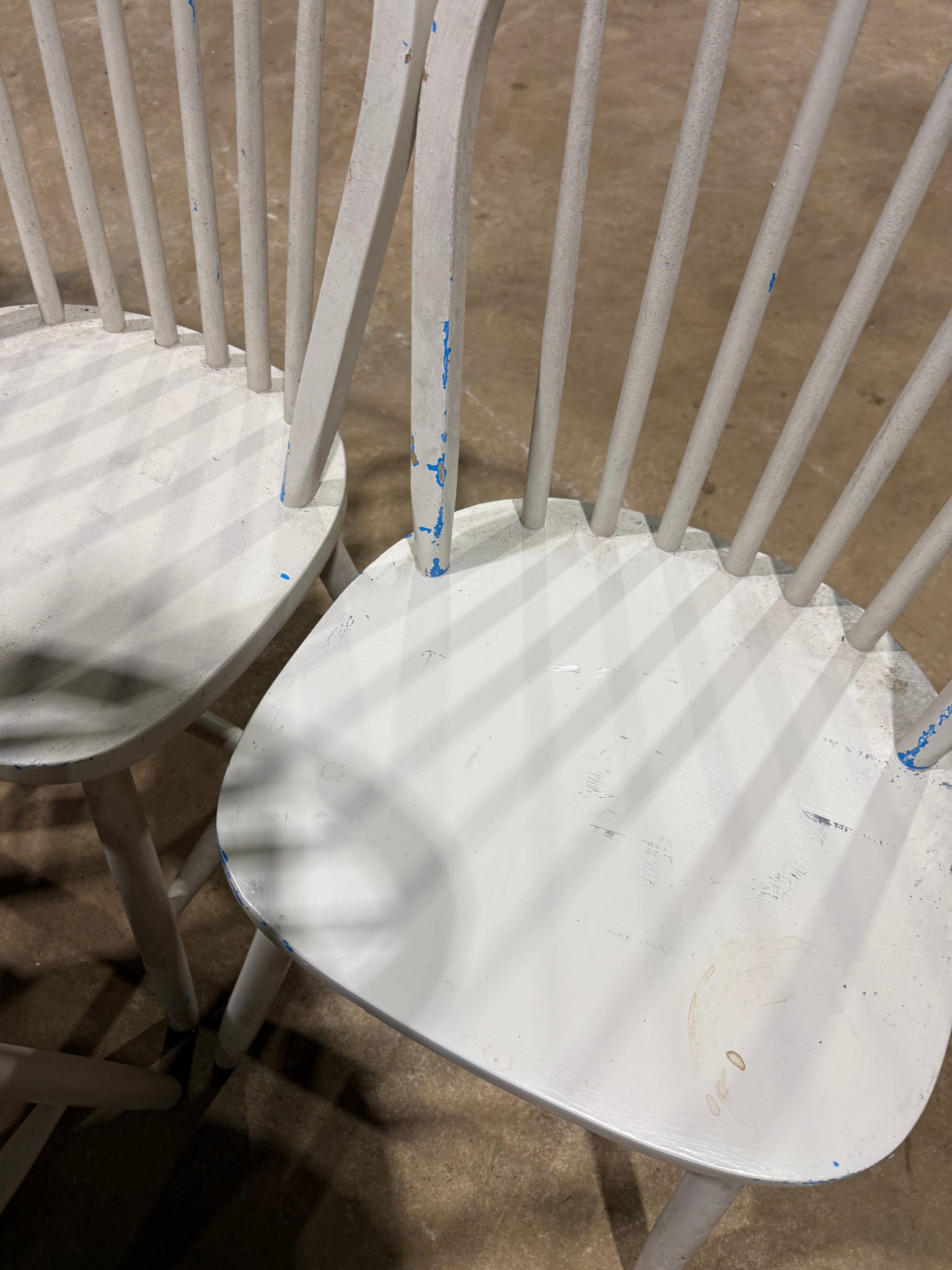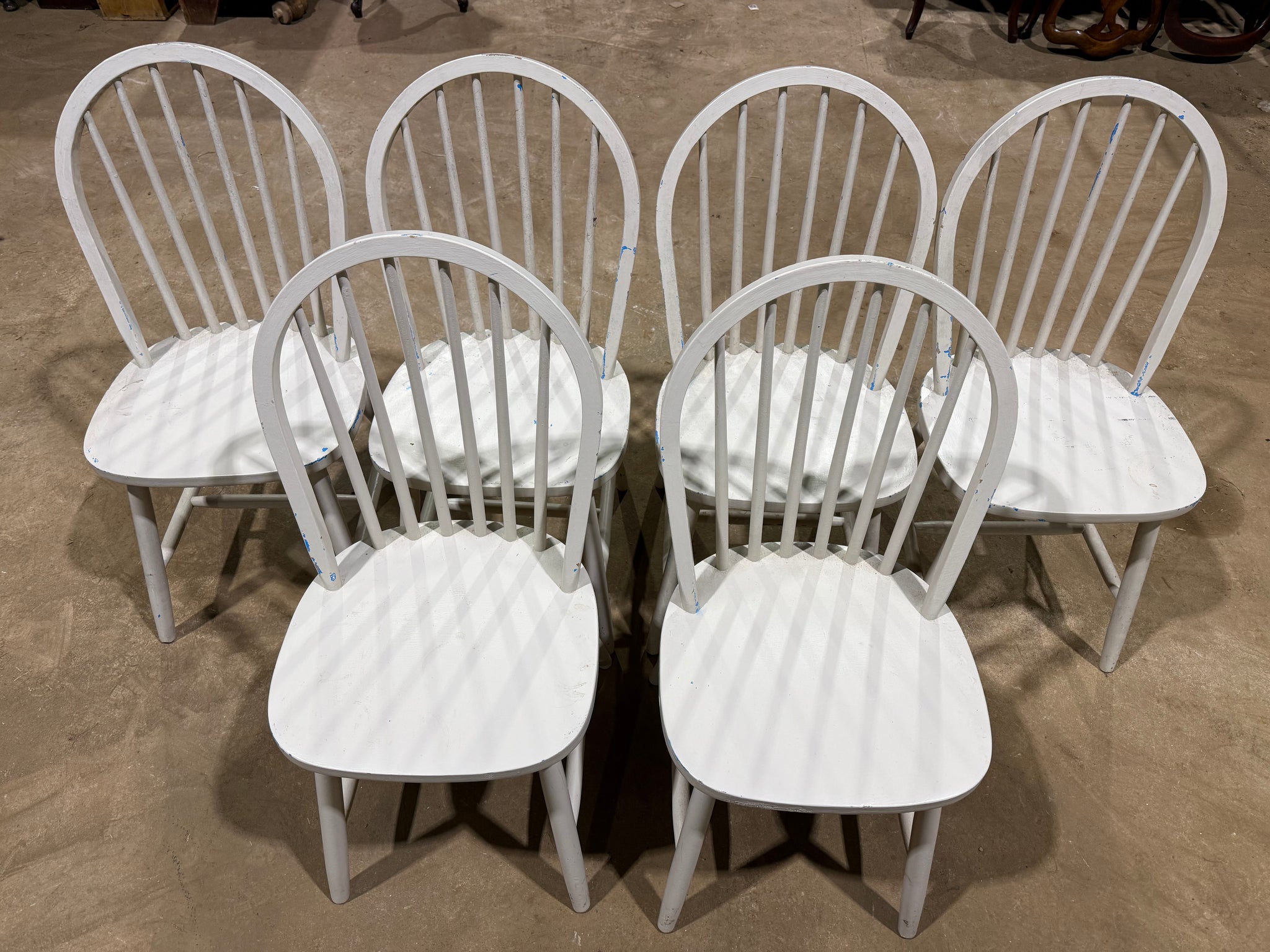 A set of six pine dining chairs with solid structural integrity, showing their age through minor surface marks and wear. Each chair remains fully functional and ready for use as-is, or ideal for those interested in restoration and upcycling projects. Honest, characterful pieces that offer genuine value for budget-conscious buyers or creative refurbishers.