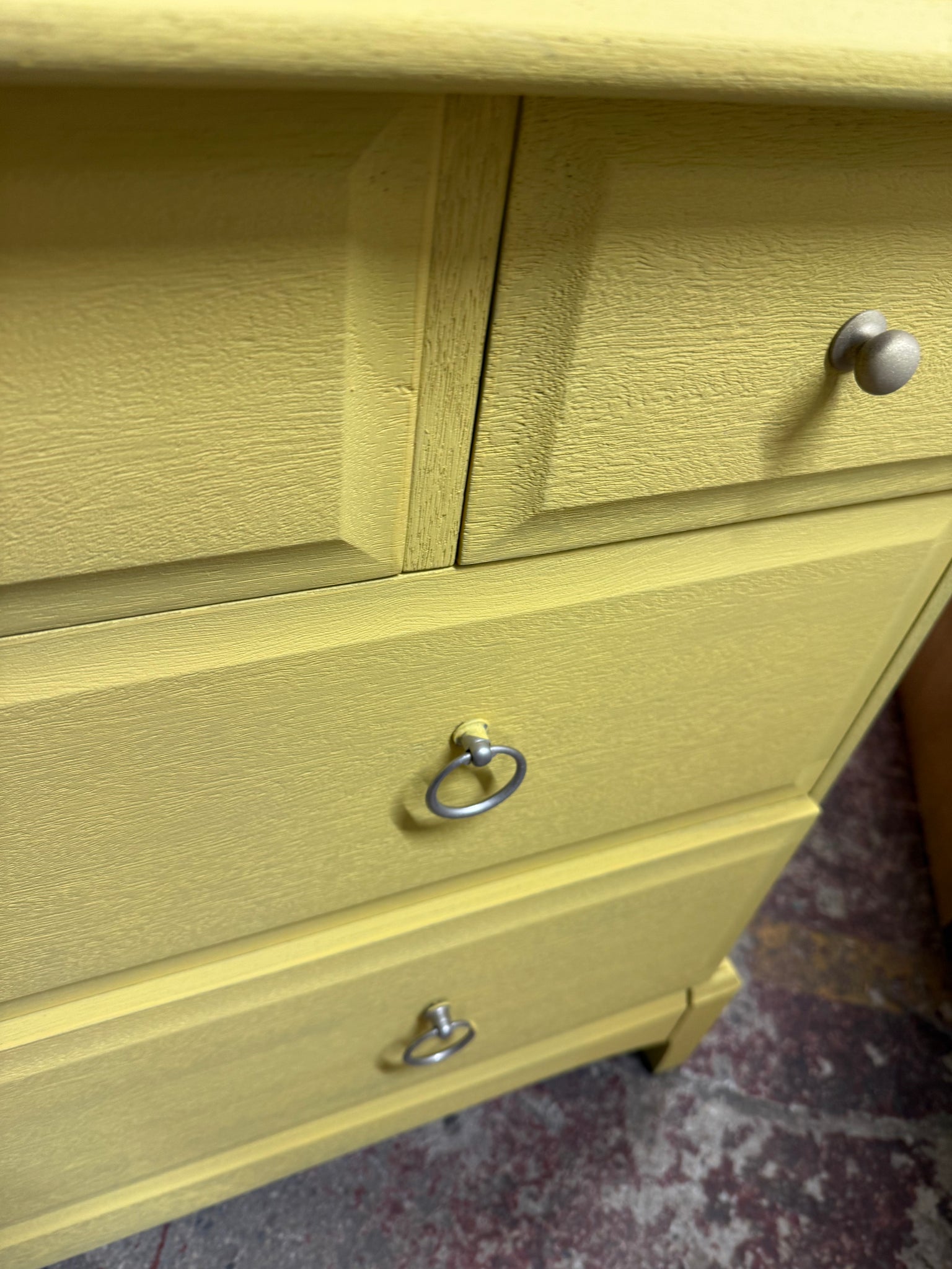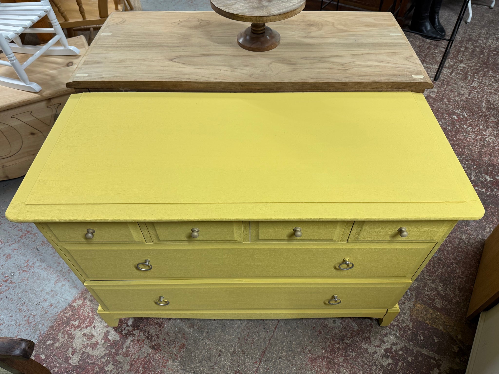 A charming stag chest featuring four compact drawers positioned above two spacious dovetail-jointed drawers, offering practical storage solutions. Finished in Farrow & Ball's sophisticated Babouche shade. The chest is structurally robust and well-maintained, making it a reliable addition to any bedroom or living space.