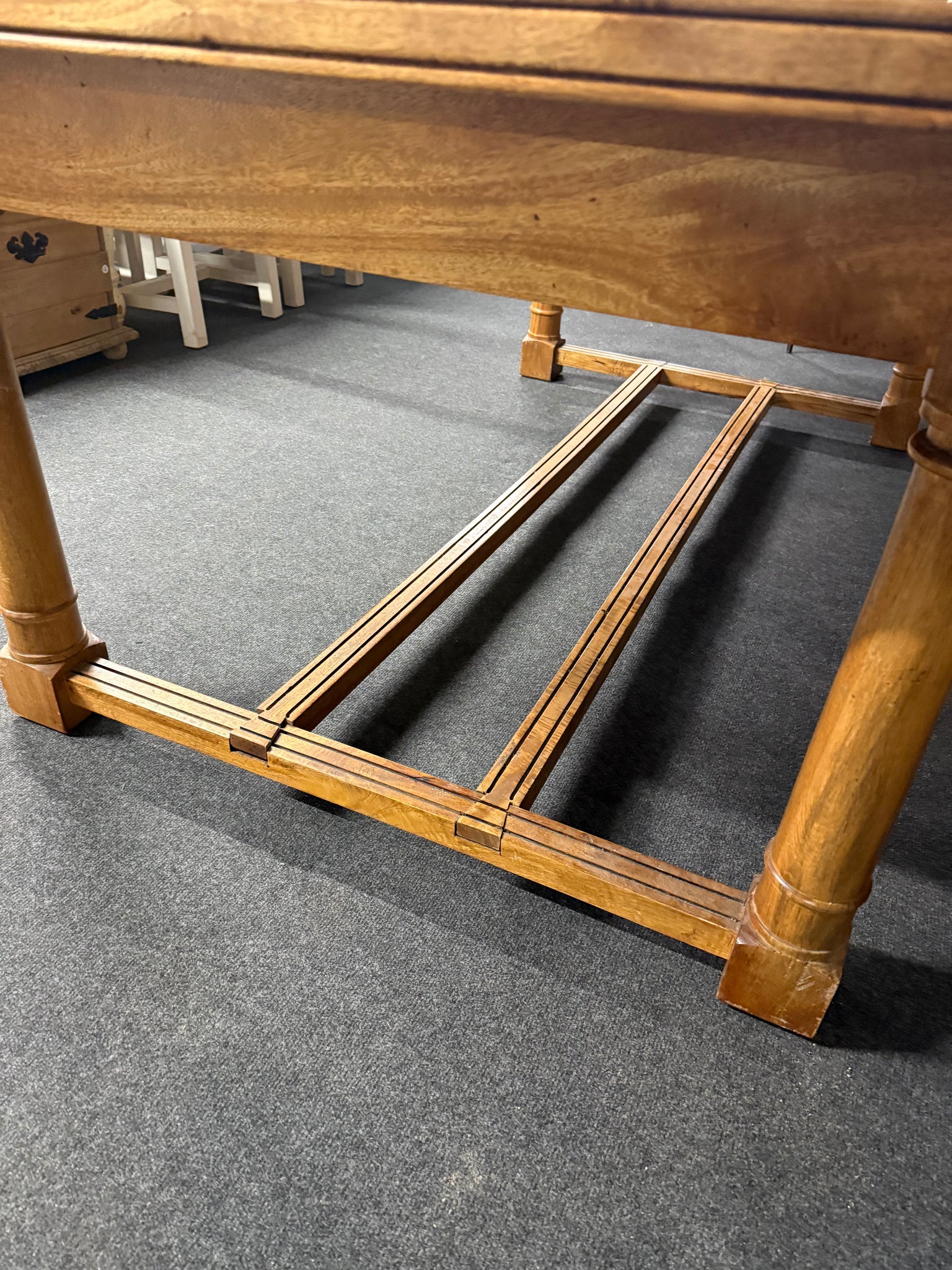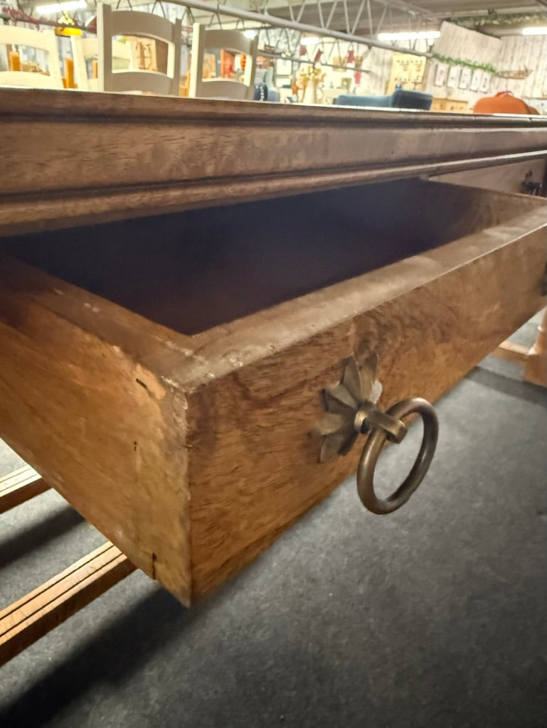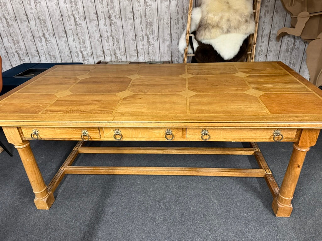 A solid Barker & Stonehouse dining table with traditional flagstone design. Built to last, it remains in strong working order with only light surface marks from everyday living. The standout feature is the generous six-drawer storage system integrated into the base—ideal for keeping dining essentials organised and accessible. The removable top design adds practical versatility, making repositioning or transport hassle-free whenever needed.