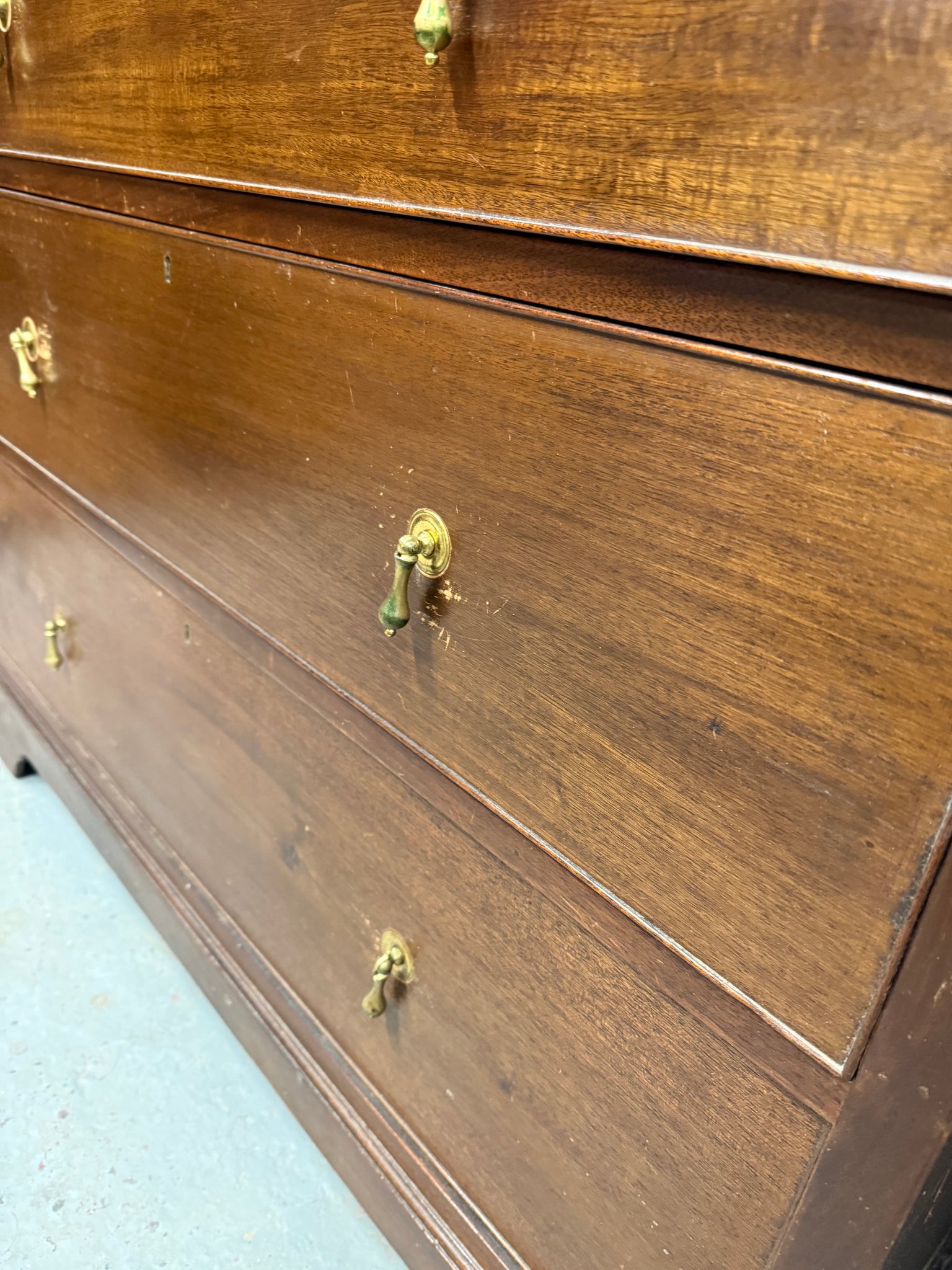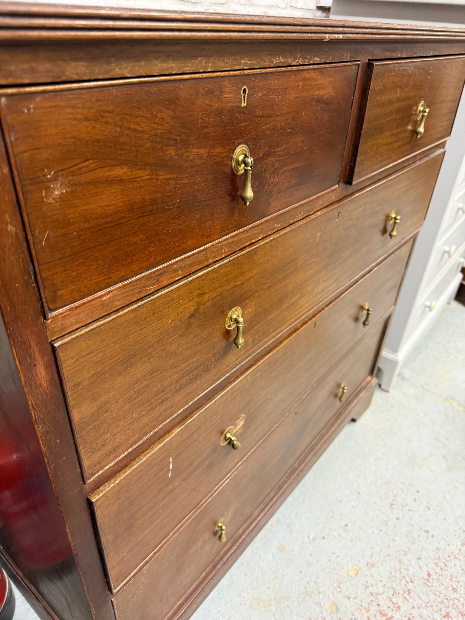 A charming period piece with authentic character, these Edwardian mahogany drawers combine practicality with timeless appeal. The solid construction features two shallow dovetail-jointed drawers above three deeper ones, offering generous storage capacity. Well-maintained and structurally reliable, they display minor surface marks. An excellent choice for adding warmth and functionality to period or eclectic interiors.