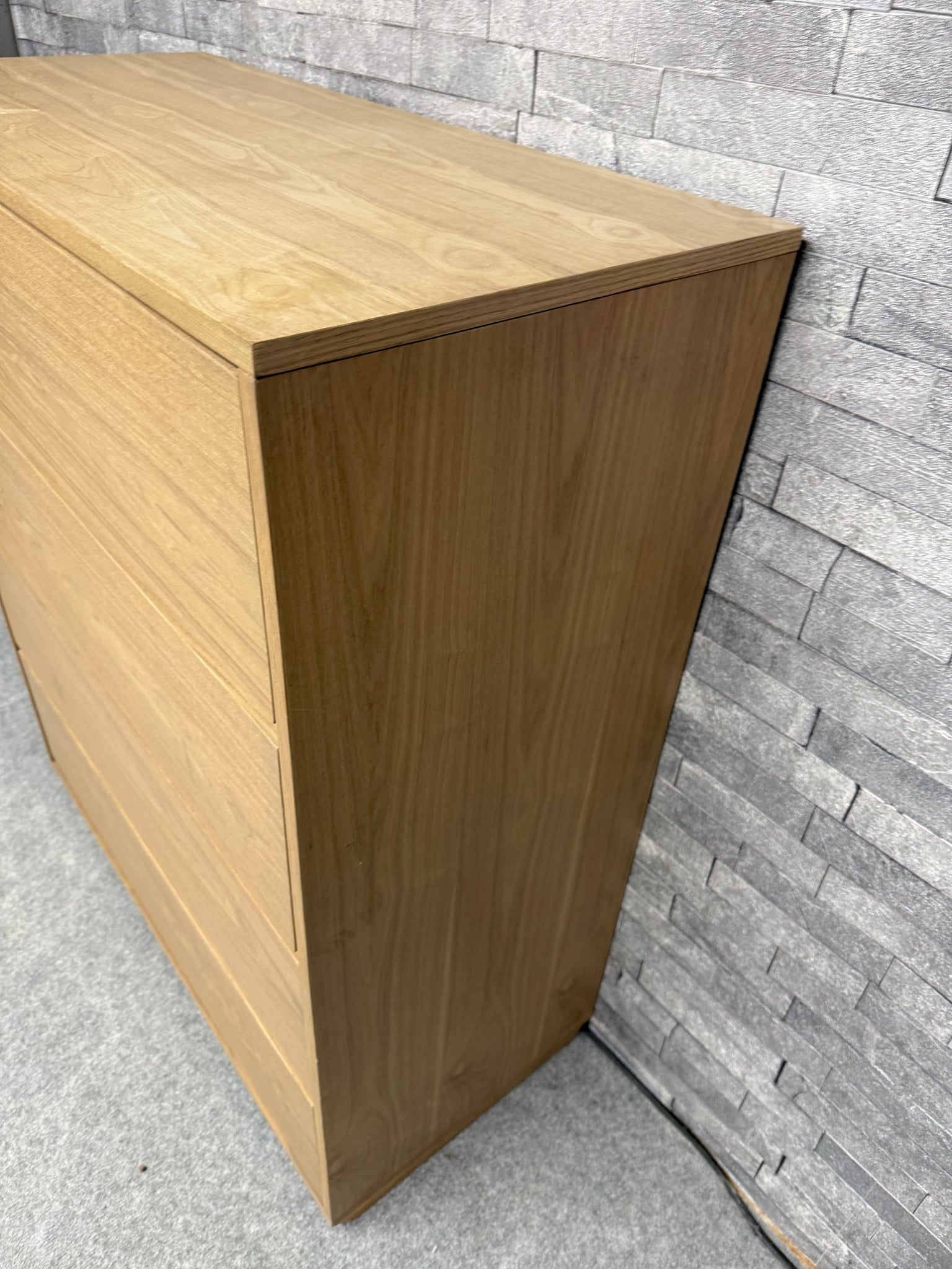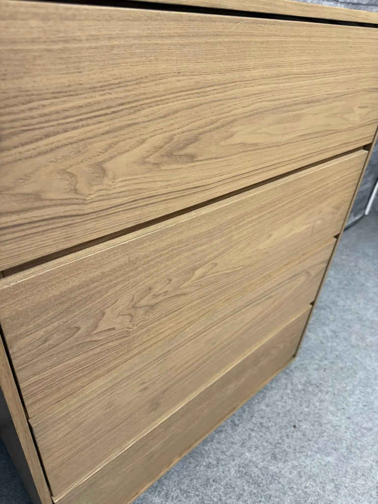 A delightful piece of modern furniture that's ready to brighten up any room! This sturdy chest features four spacious drawers, perfect for keeping your essentials neatly organised. While it bears the gentle marks of pre-loved charm with minor surface marks they are nothing major.
