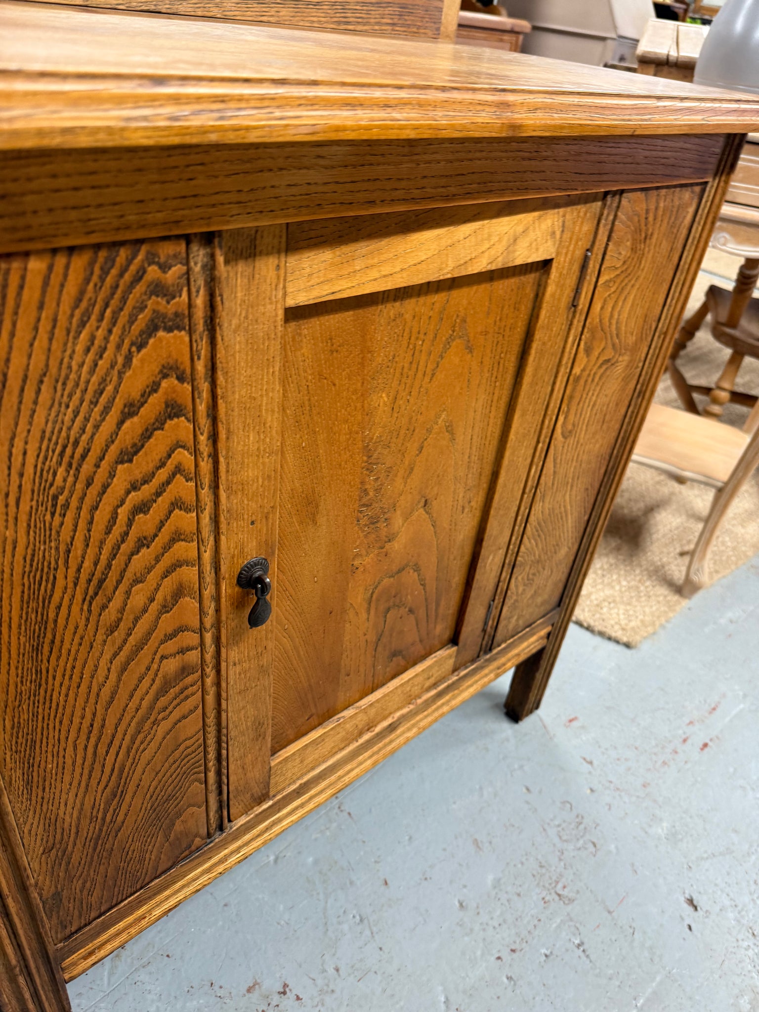 Crafted from oak, this cupboard combines timeless appeal with practical storage. The single cupboard features an internal shelf, offering flexible space for books, tableware, or household essentials. As a pre-loved piece, it bears the gentle patina of age—minor surface marks that add character rather than detract from its sturdy construction. A reliable addition to any room seeking vintage charm and functional storage.