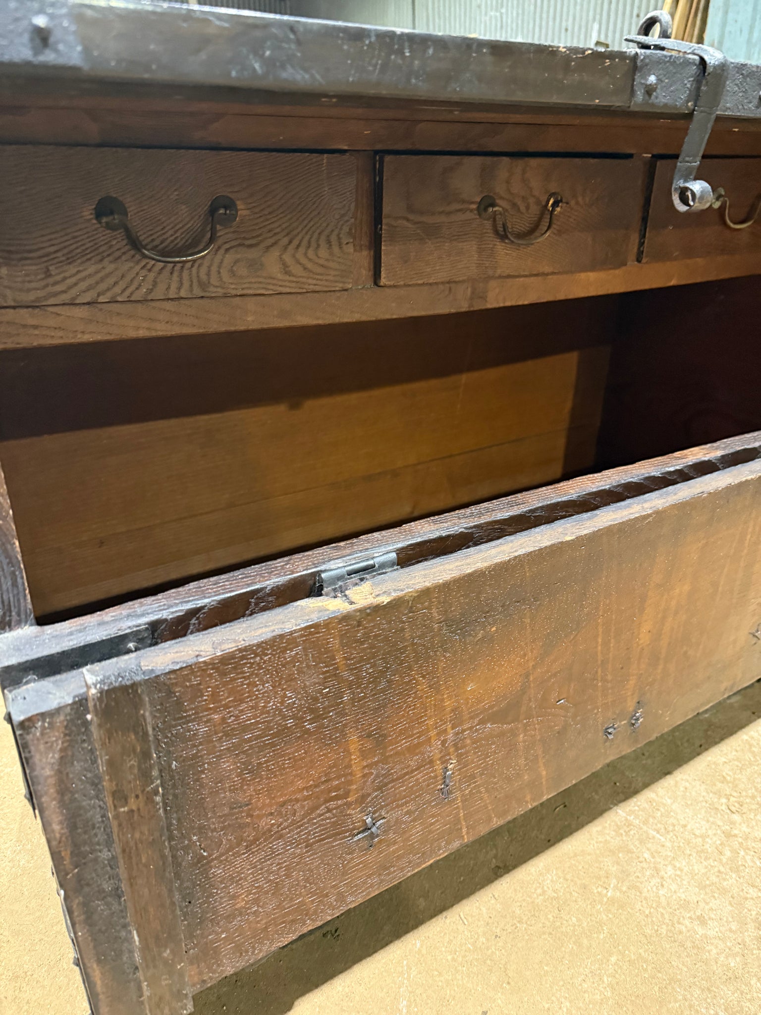 A beautifully crafted oriental hardwood trunk that combines practical storage with timeless appeal. The solid construction ensures durability, whilst the lift-up lid and internal drawers provide generous space for organising your belongings. Dual side handles make repositioning effortless. Minor surface marks reflect its character. An ideal piece for adding storage and distinctive style to any room.
