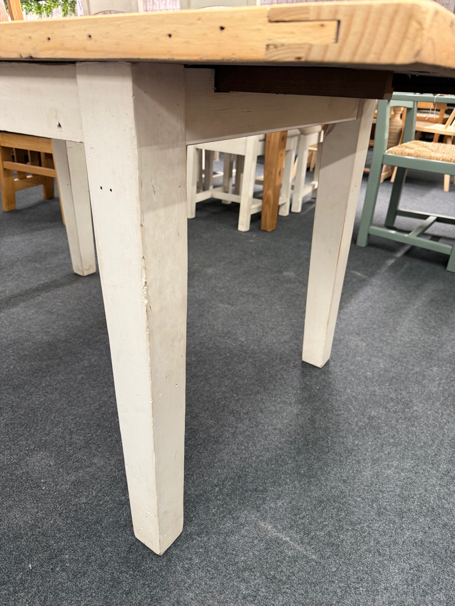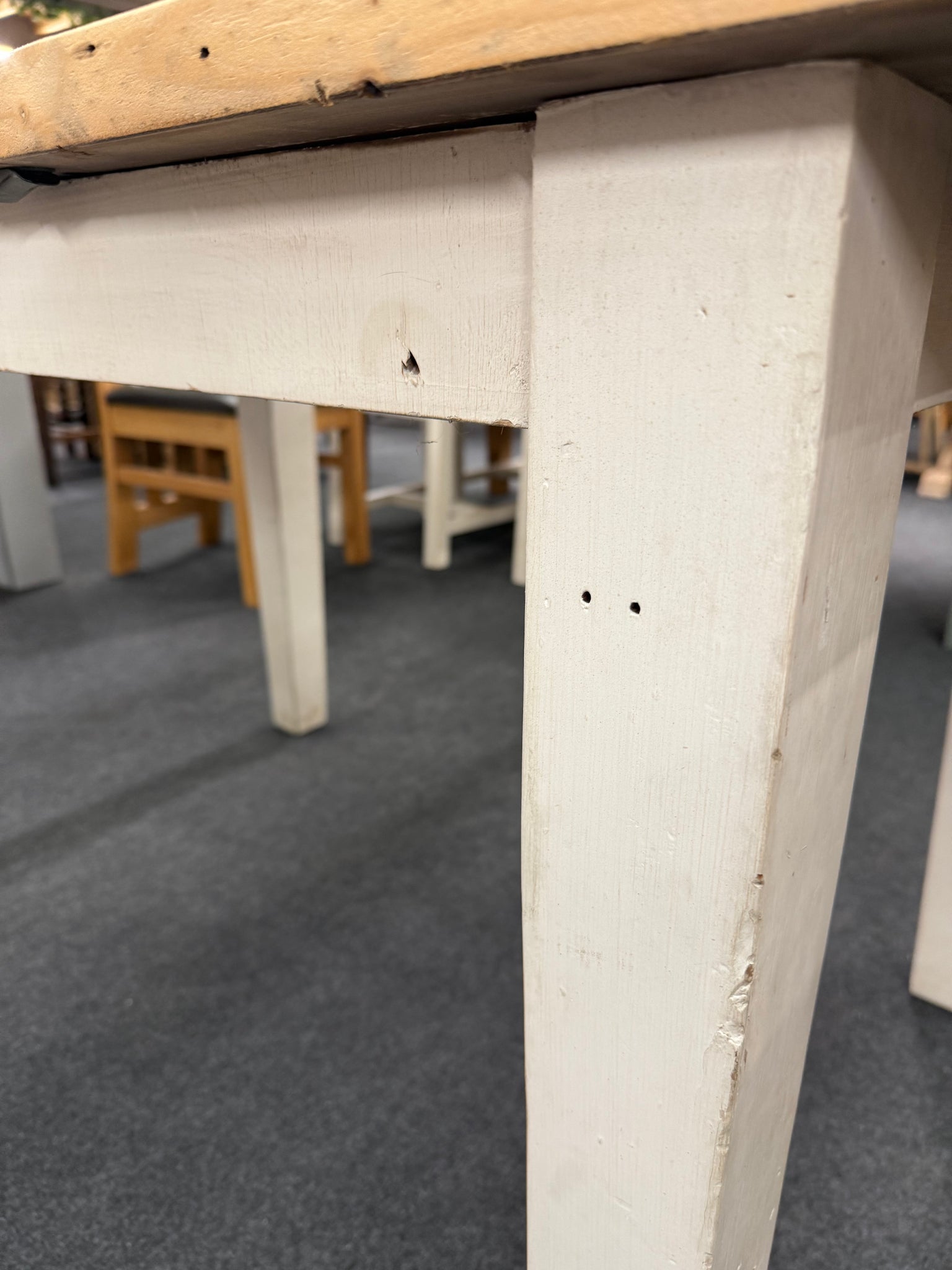 This beautiful reclaimed pine dining table is both sturdy and in great shape. Though there are a few marks on the legs, they’re easy to repair. It comfortably seats six when closed and can extend to accommodate eight. Plus, the removable legs make moving it hassle-free.