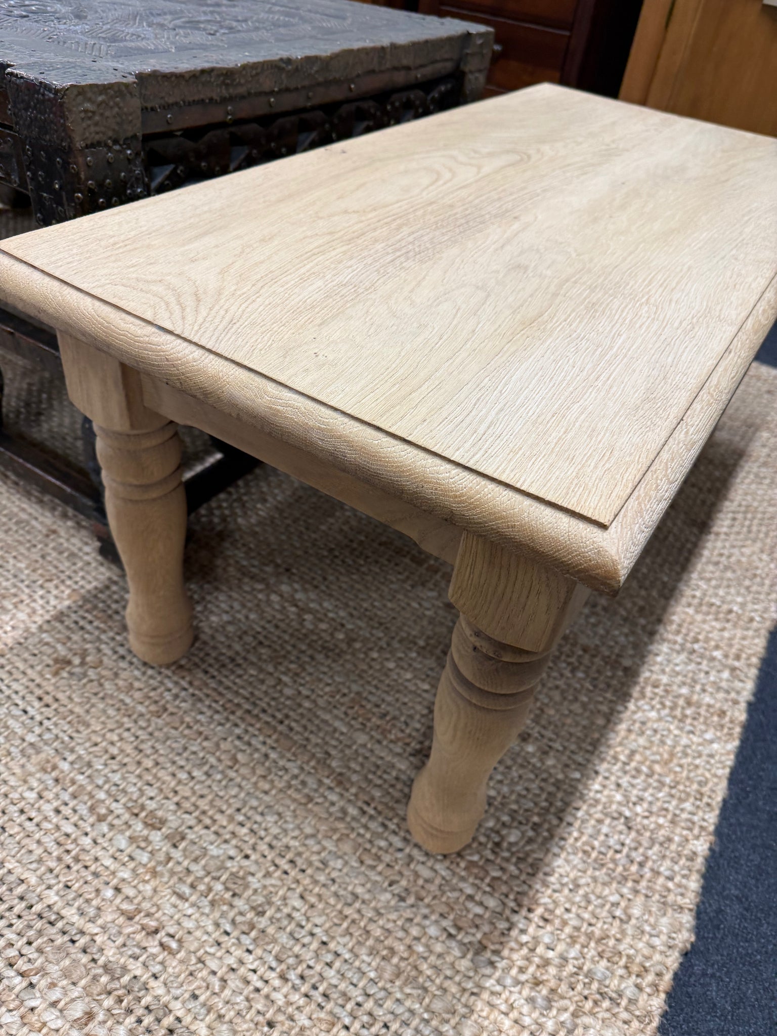 Crafted from solid oak and stripped to reveal its authentic grain, this coffee table showcases natural wood. The bare finish allows the wood's inherent beauty to shine through, though you may wish to apply wax or oil for added protection and longevity. A straightforward piece that celebrates honest craftsmanship and timeless design.