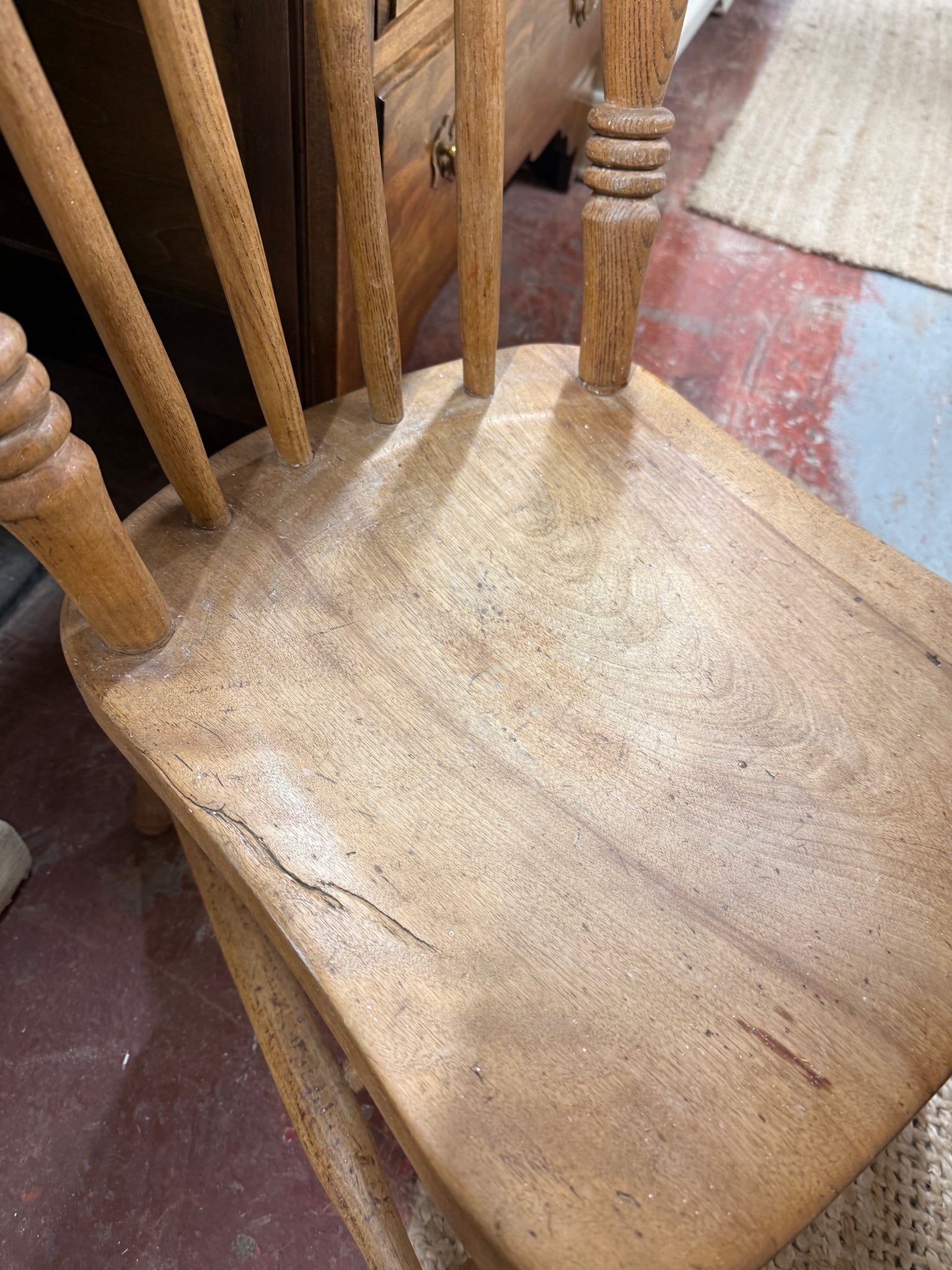 A charming Victorian Elm Nursing Chair that has stood the test of time. Structurally solid with authentic period character, this piece shows its age gracefully with minor surface marks that add to its vintage appeal. Well-suited to a nursery or any room seeking traditional elegance and genuine craftsmanship.